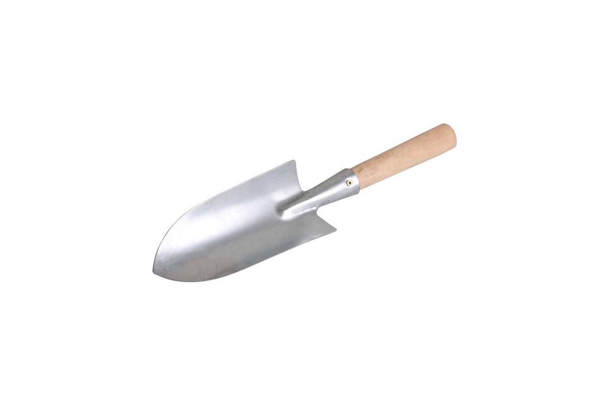 Совок предназначен для посадки мелких растений на садовом участке. Деревянная ручка удобно сидит в руке. Рабочая часть имеет цинковое покрытие.