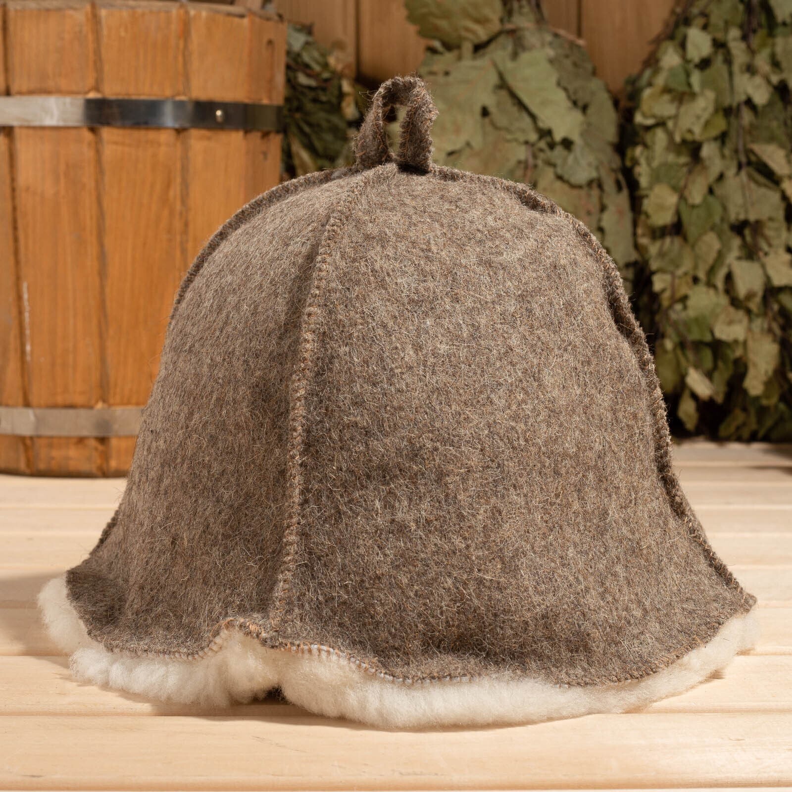 Шапка для бани из овчины "Войлочная" скорняжный шов, покрытая войлоком