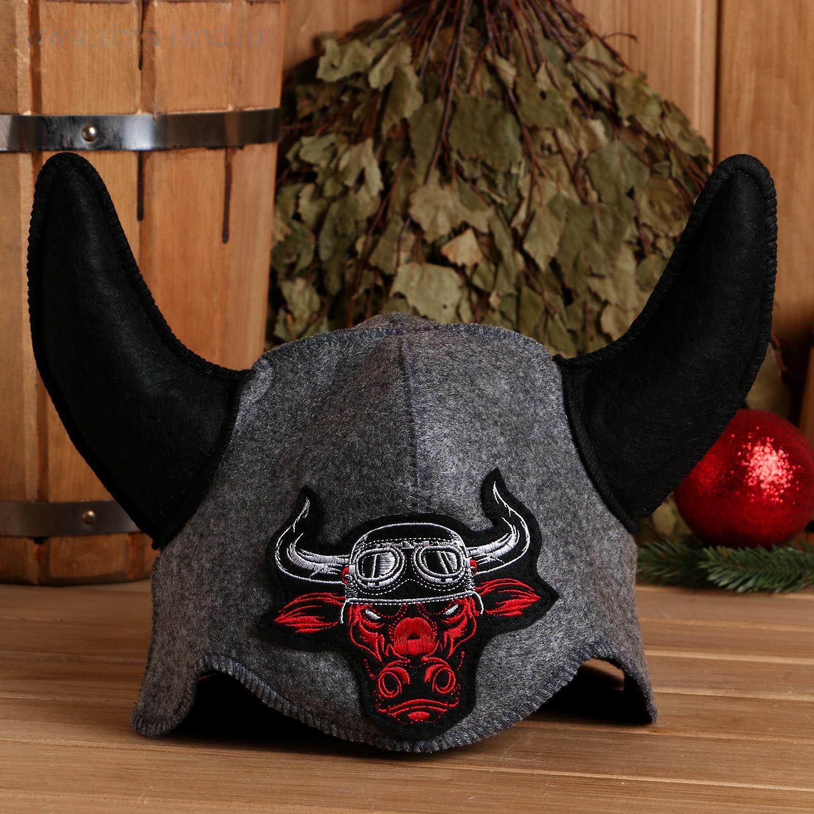 Шапка для бани "Бык-байкер" шлем викинга