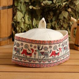 Шапка для бани "Лисы, лоси", принт, фетр белый