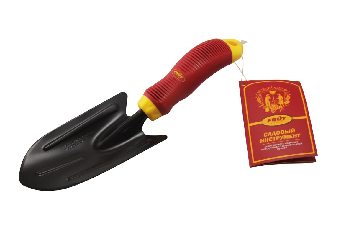 Садовый совок FRUT Club - современный, качественный и эргономичный инструмент, предназначенный для подготовки почвы при посадке растений, смешивания грунта и формирования посадочных ямок. Рабочая часть изготовлена из высококачественной хром-молибденовой стали с эпоксидным покрытием, которое предотвращает коррозию и налипание почвы. Эргономичная прорезиненная рукоятка с антискользящим покрытием обеспечивает максимальное удобство и снижает нагрузку на руки при работе.