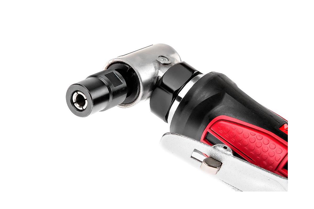 Угловая шлифмашинка с зажимной цангой на 6 мм для работ в местах с ограниченным доступом. Головка расположена под углом 90° к корпусу.