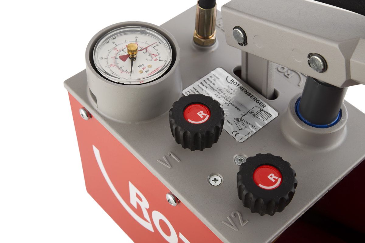ROTHENBERGER RP 50 – ручной опрессовщик для проверки на герметичность систем водоснабжения. Незаменим для анализа отопительных и канализационных сетей, при производстве котлов и напорных резервуаров, обслуживания солнечных батарей. Заполнение и испытание давлением (макс. 60 бар) осуществляется за одну операцию.