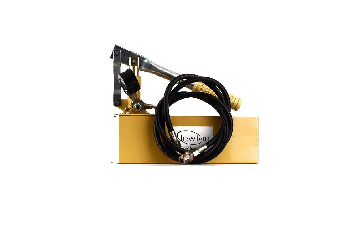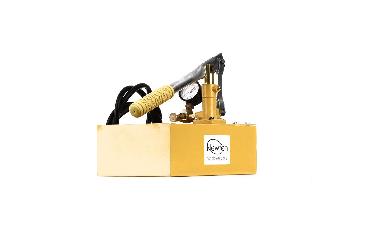 Опрессовщик NEWTON 25 обеспечивает рабочее давление в системе до 25 кгс/см². Работает с водой или минеральным маслом. Объем бака с антикоррозийным порошковым покрытием 5 л. Насос снабжен тарельчатым латунным клапаном. Прилагаемое при работе усилие не более 15 кгс. Масса опрессовщика без жидкости — 3,1 кг.
