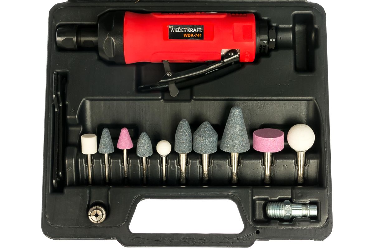Машинка шлифовальная прямая пневматическая WIEDERKRAFT WDK-741K 22000об/мин комплект насадок 15пр.