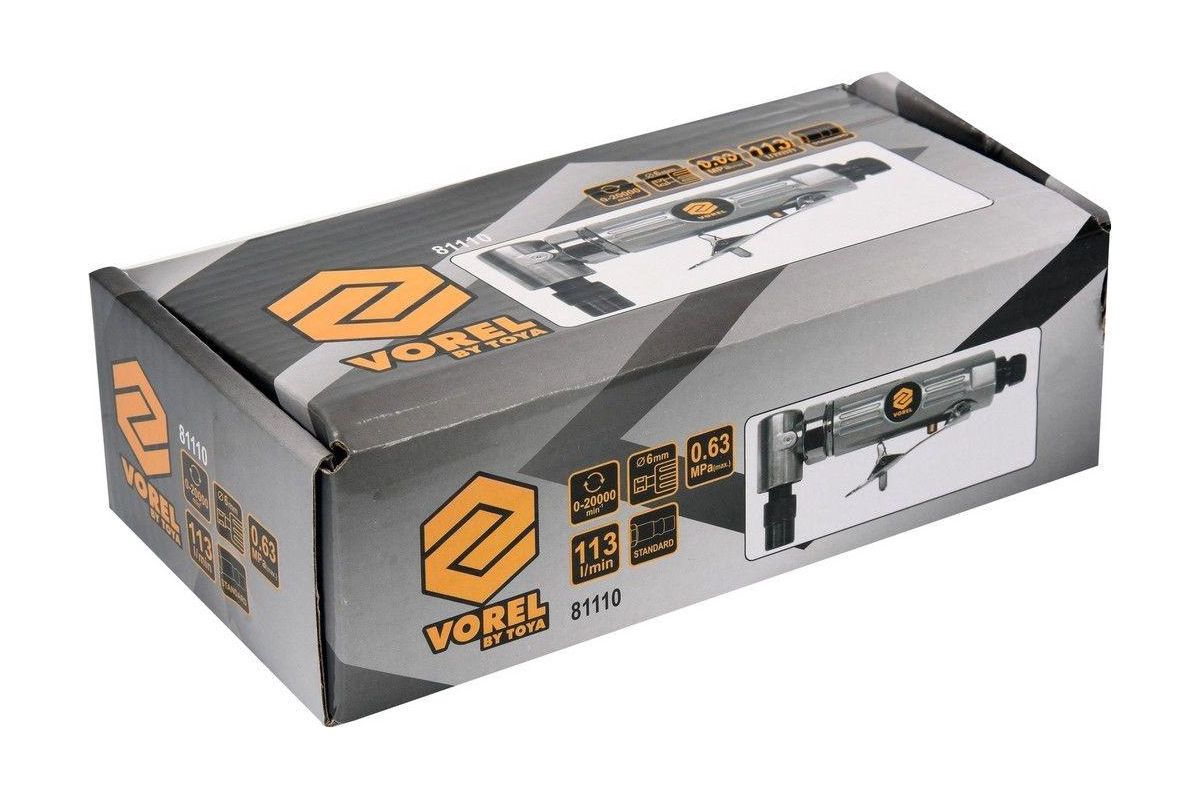 Пневматическая угловая шлифовальная машина VOREL 81110 - устройство, питающееся струей сжатого воздуха под соответствующим давлением.