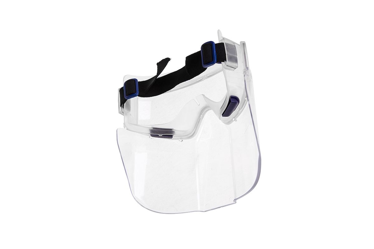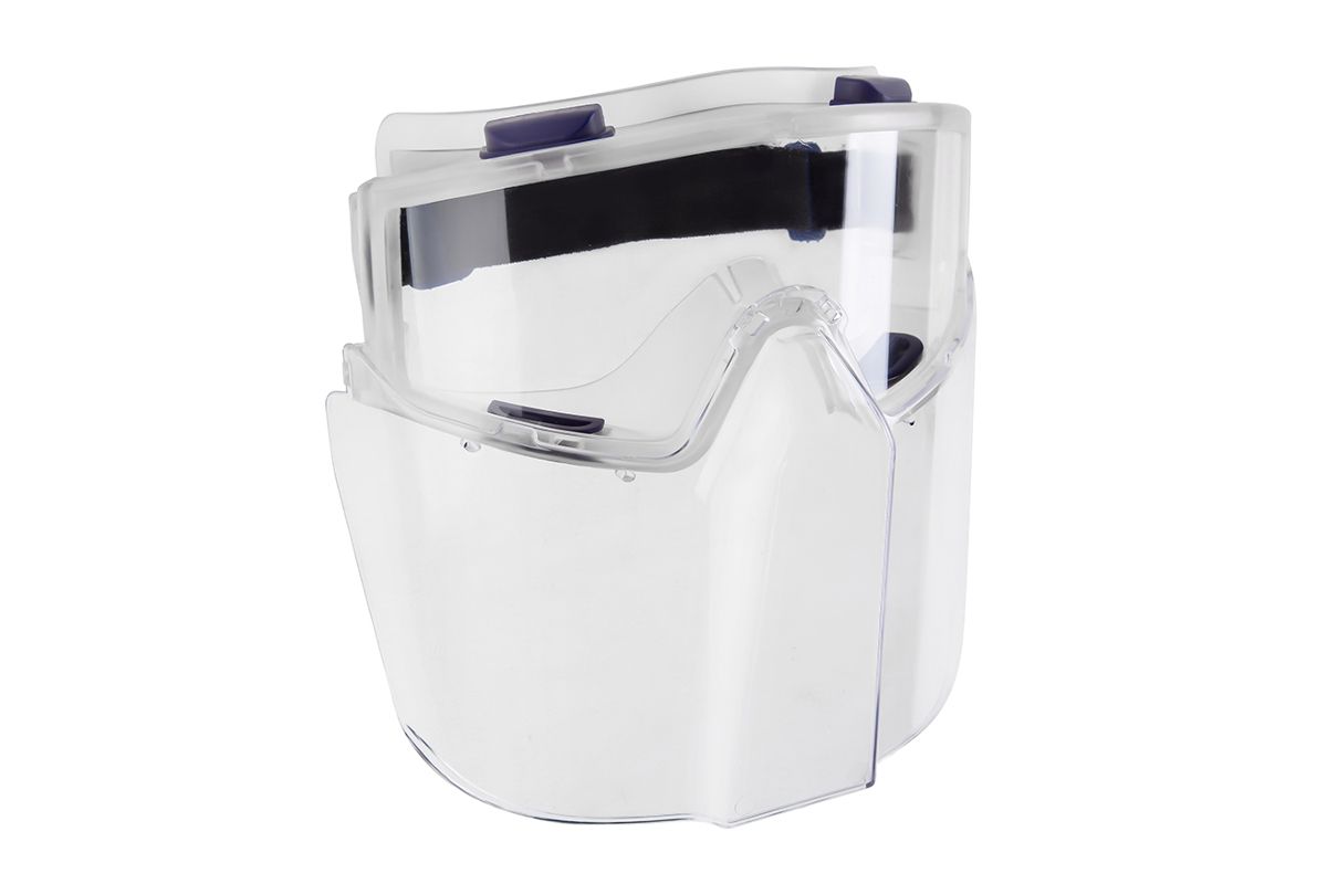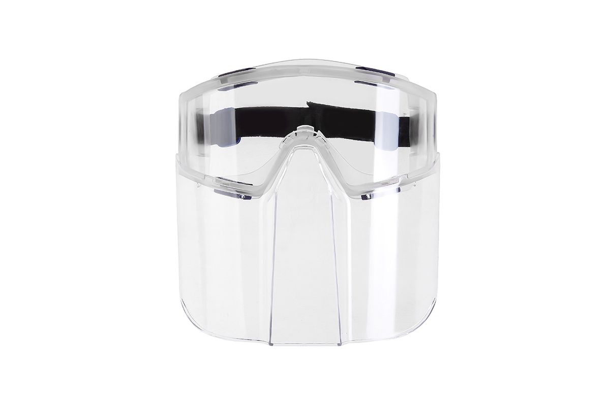 Маска состоит из панорамной защитной линзы из высококачественного поликарбоната, устойчивого к истиранию и царапанию и щитка, закрывающего нижнюю часть лица.