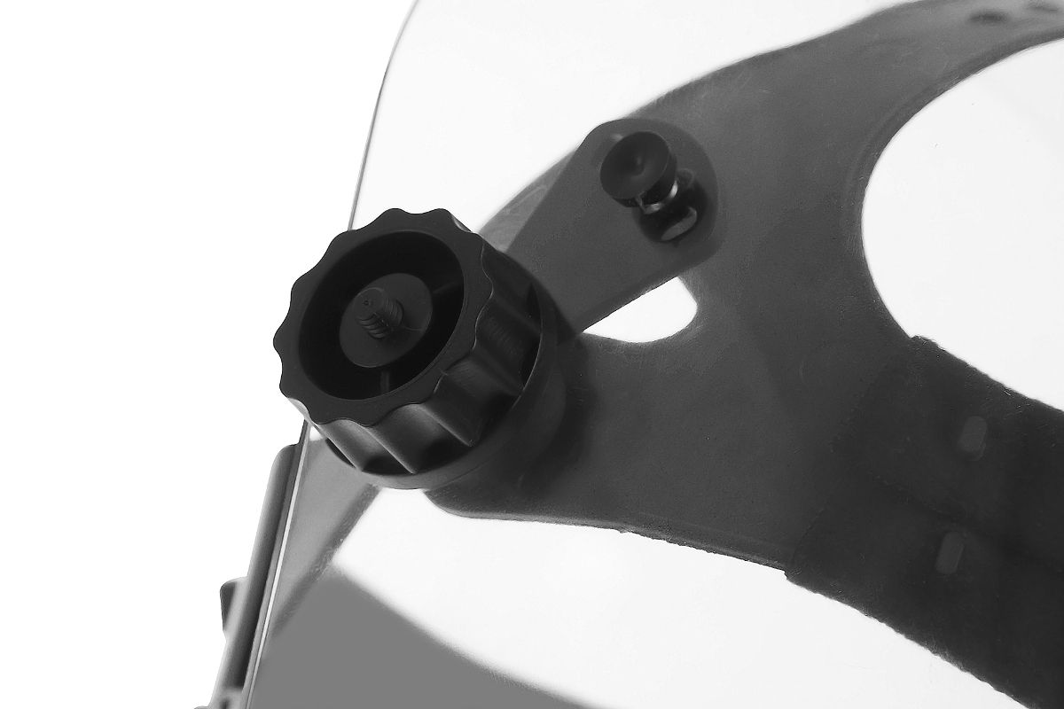 Лицевой щиток. Обеспечивает защиту от высокоскоростных летящих частей.Толщина линзы: 2мм. Наголовник с откидным механизмом
