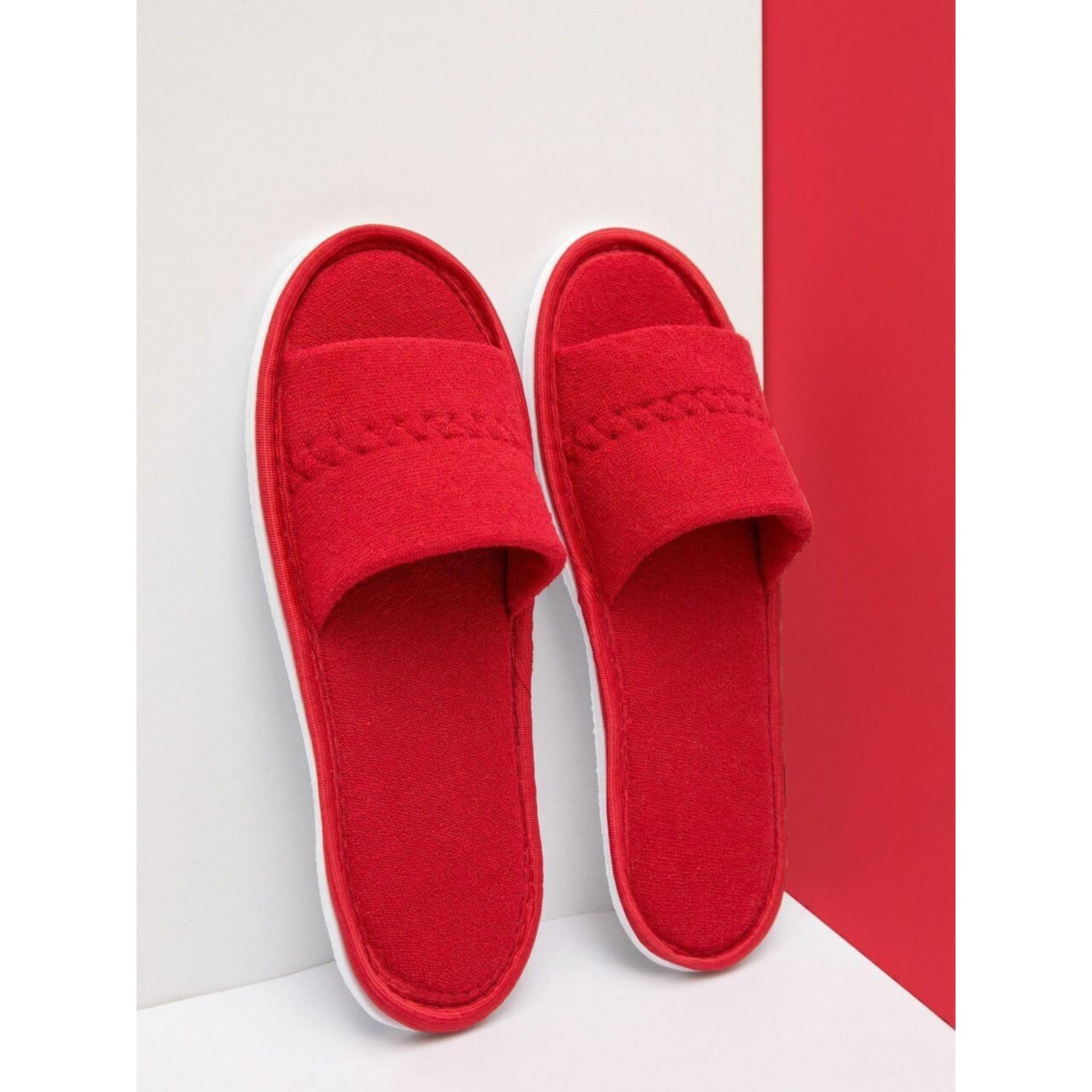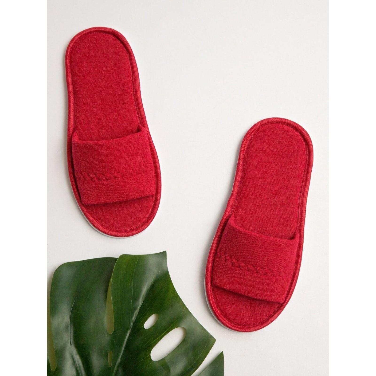 Тапочки женские Махра AMARO HOME Открытый нос (Бордовый) 36-38