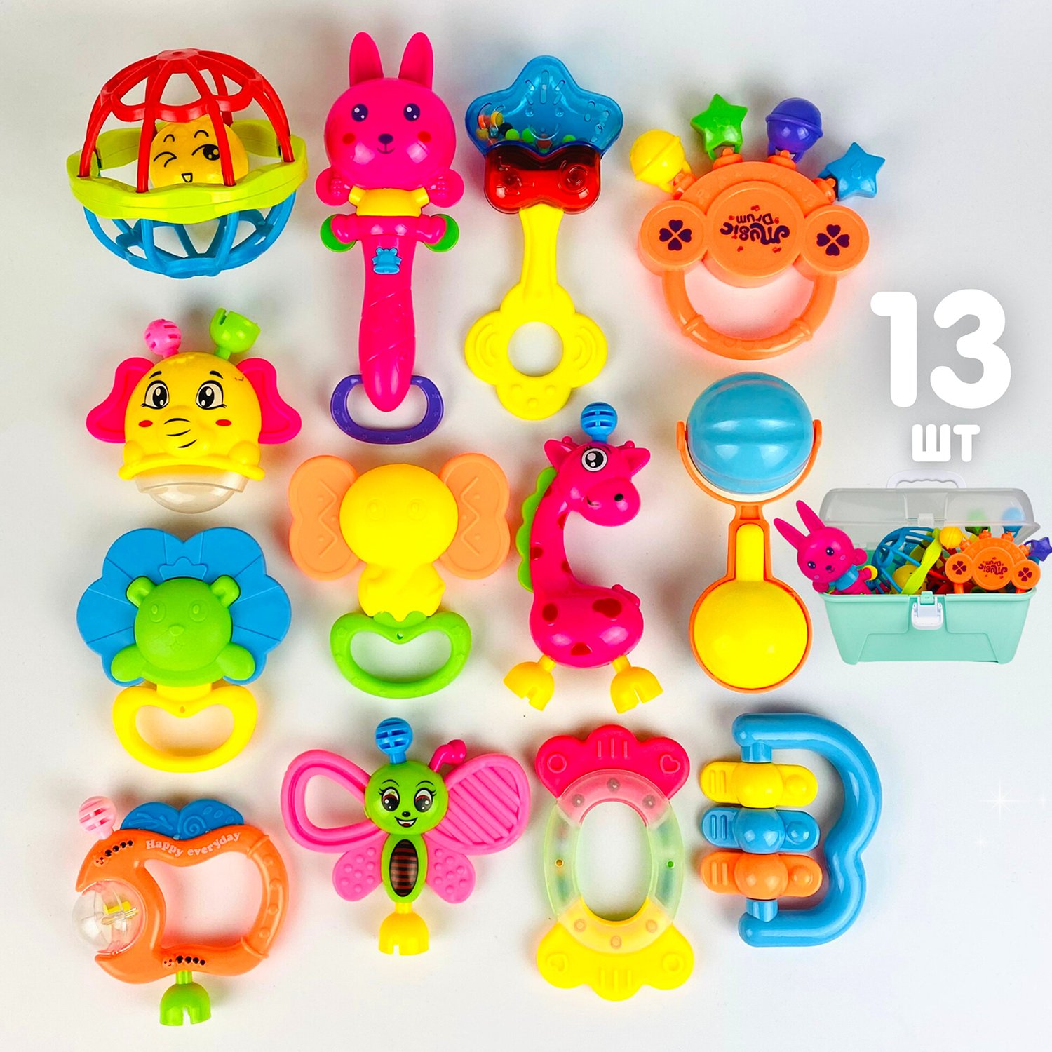 Погремушка и прорезыватель Zeimas набор 13 шт в кейсе яркие развивающие игрушки для малышей ZMRAT13SHT/