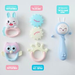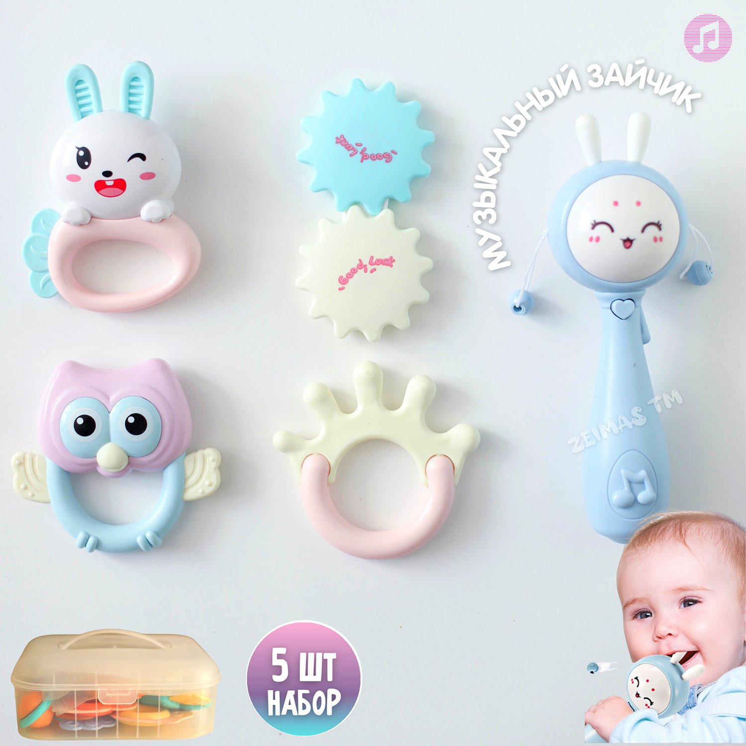 Набор игрушек для малышей Zeimas Погремушка и прорезыватель 5 шт с музыкальным зайчиком в кейсе 6BNRATTLE/зайчик
