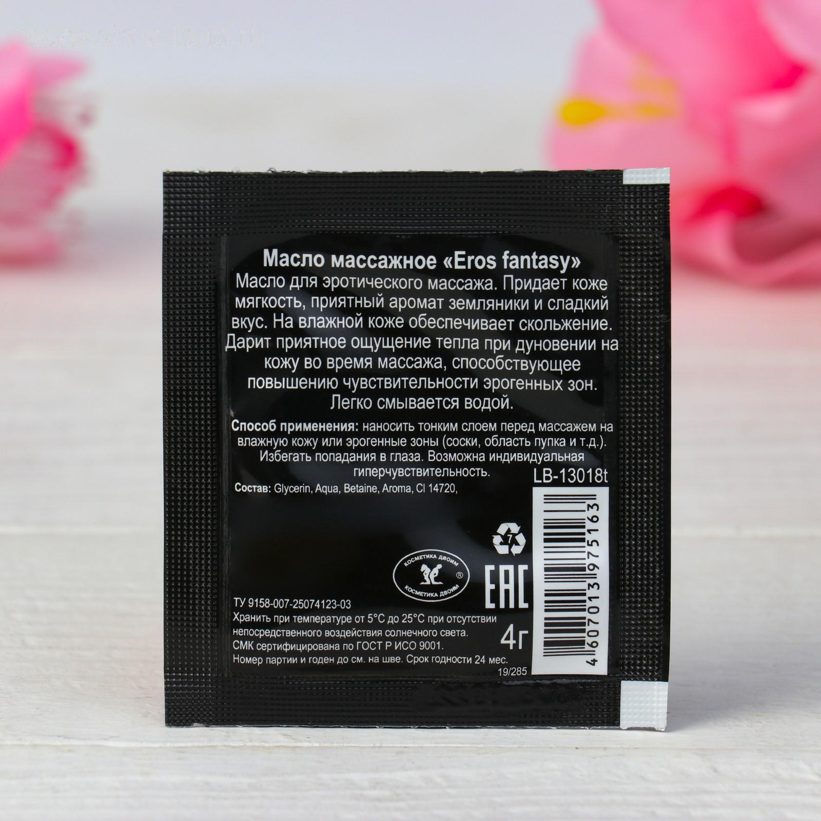 Массажное масло Eros Fantasy, с ароматом земляники, 4 г