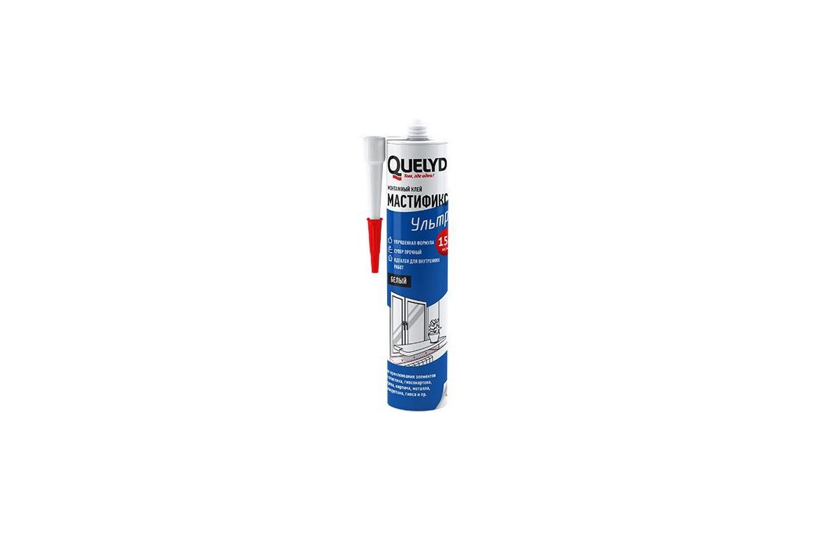 Quelyd Мастификс «Ультра» специально разработан для приклеивания различных элементов и материалов для декорации и строительства. Рекомендован для приклеивания дерева, ДСП, ДВП, OSB к кирпичу, камню и бетону. Также подходит для EPS и XPS, приклеивания керамической плитки к пористым основаниям. Только для внутренних работ.