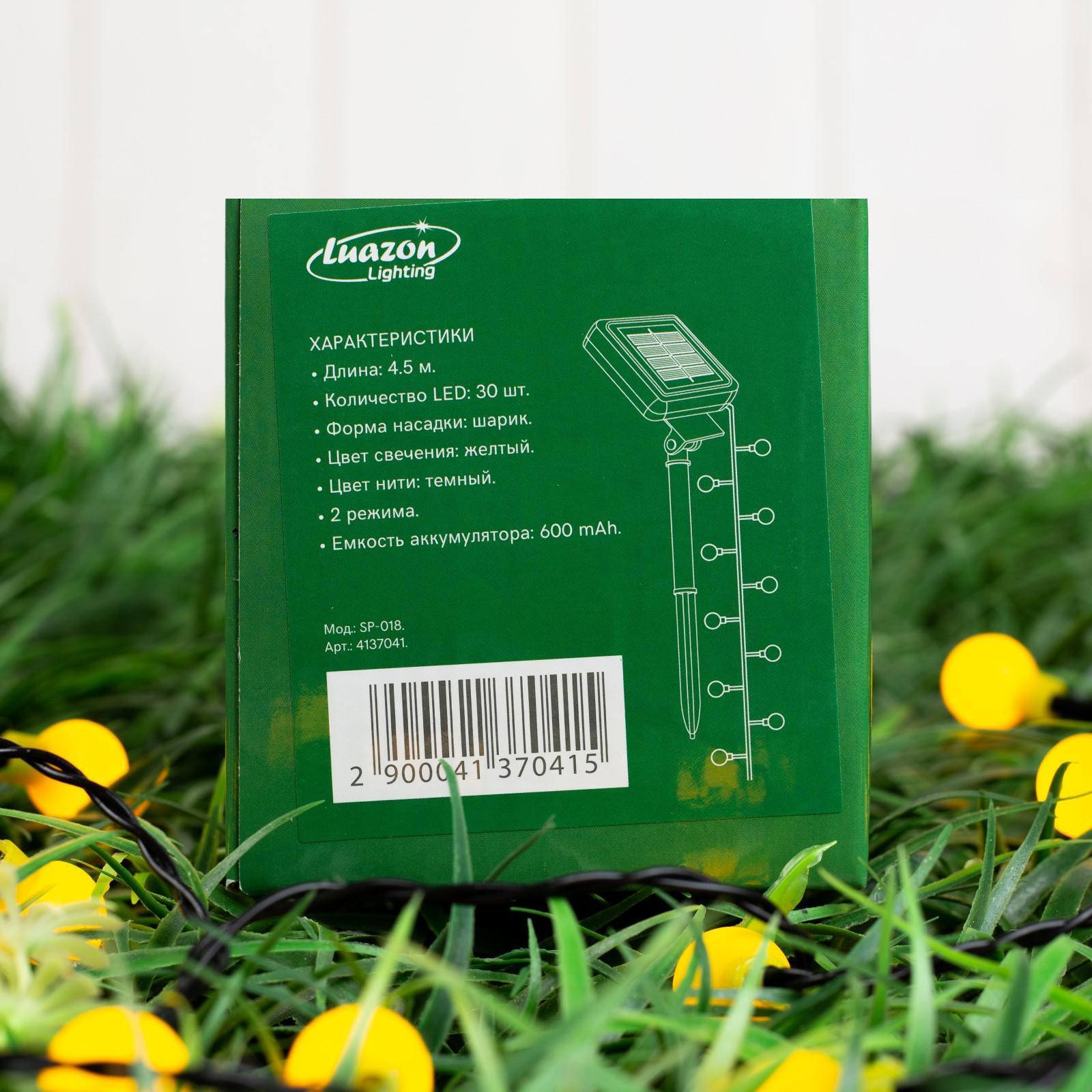 Гирлянда «Нить» 4.5 м с насадками «Шарики», IP44, тёмная нить, 30 LED, свечение жёлтое, 2 режима, солнечная батарея