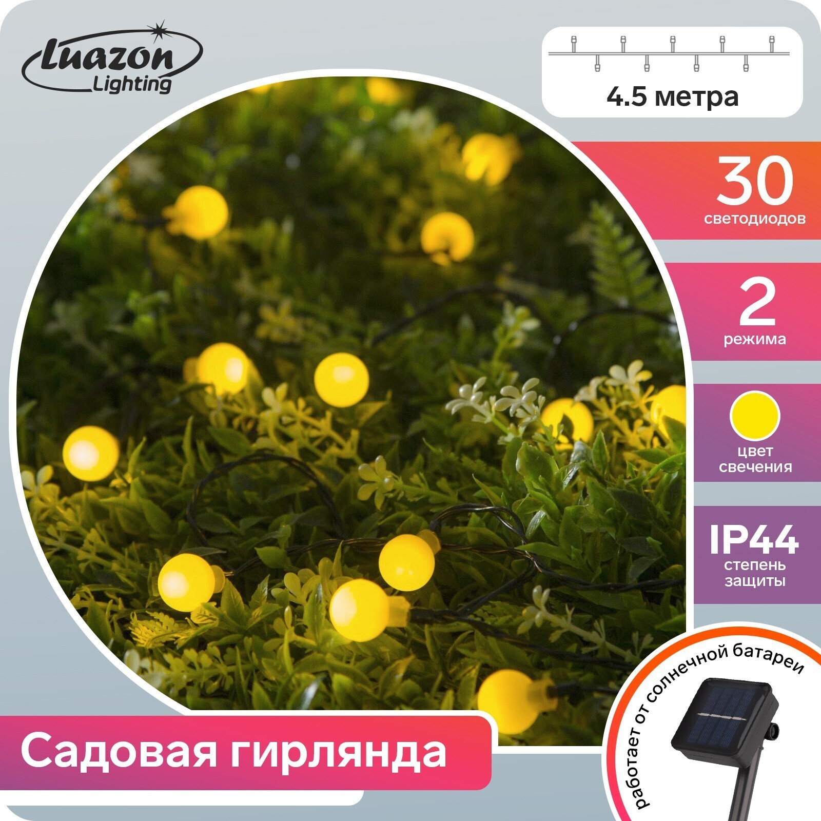 Главным преимуществом гирлянды является её независимость от электропитания. Аккумулятора в солнечной панели хватает для работы в течение 6 часов.