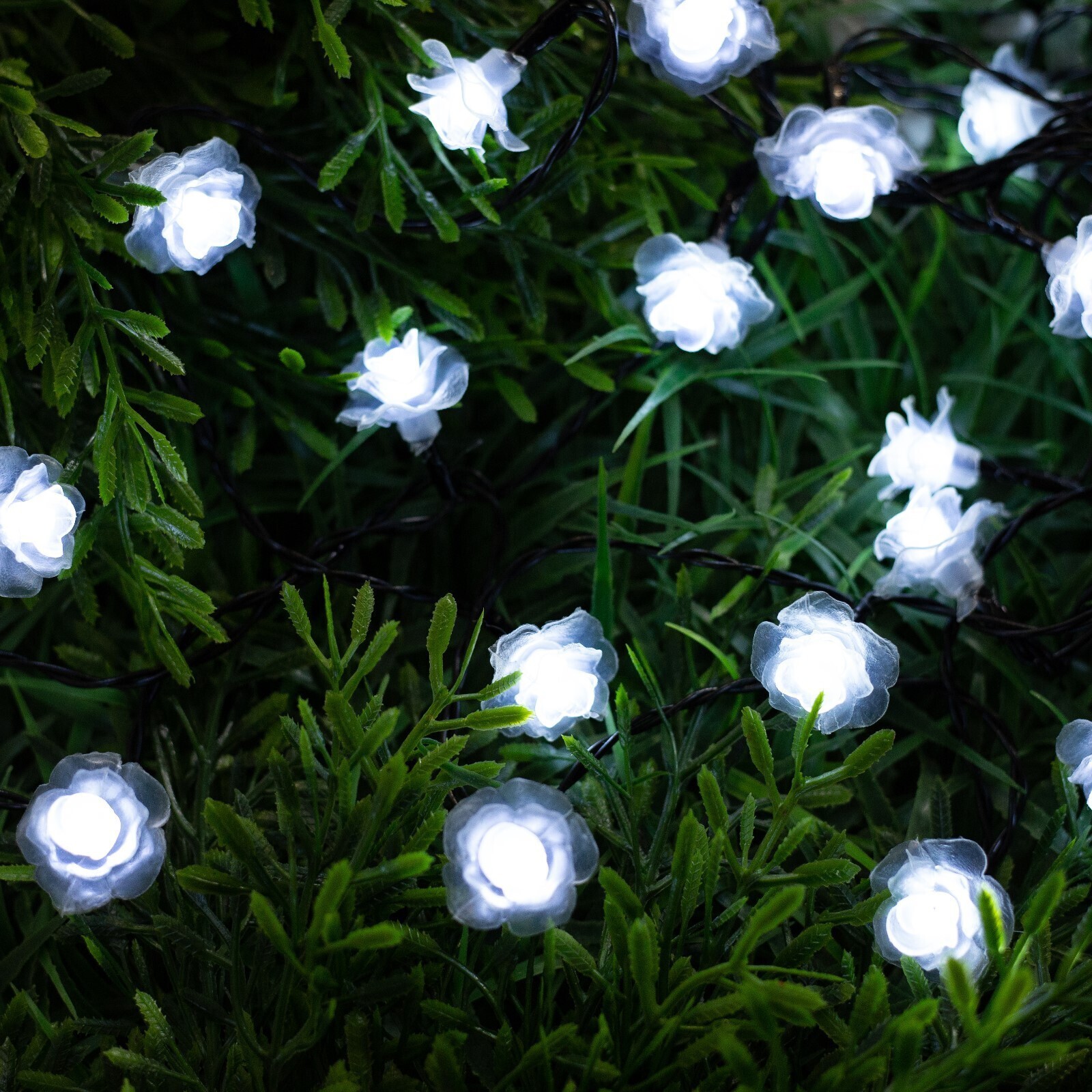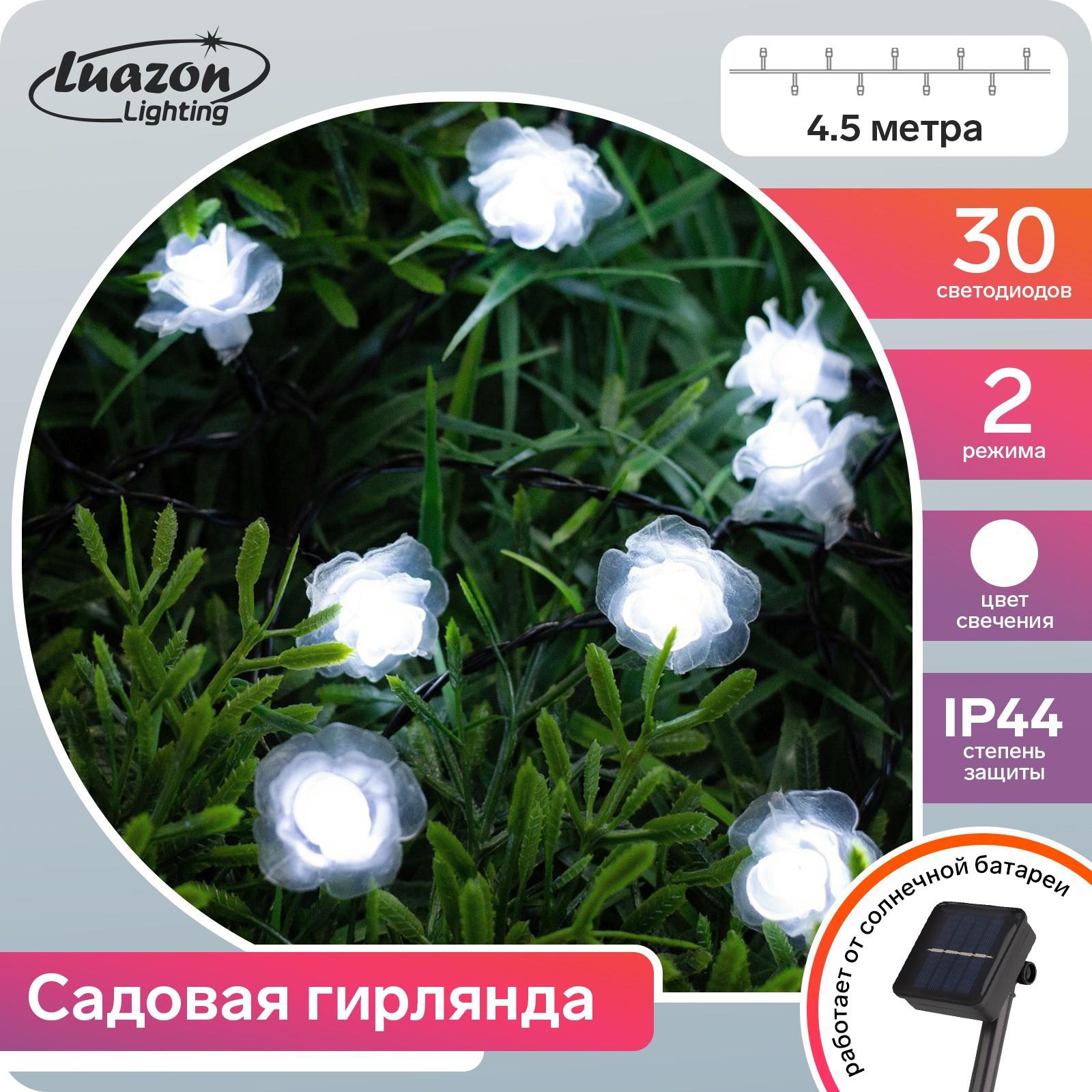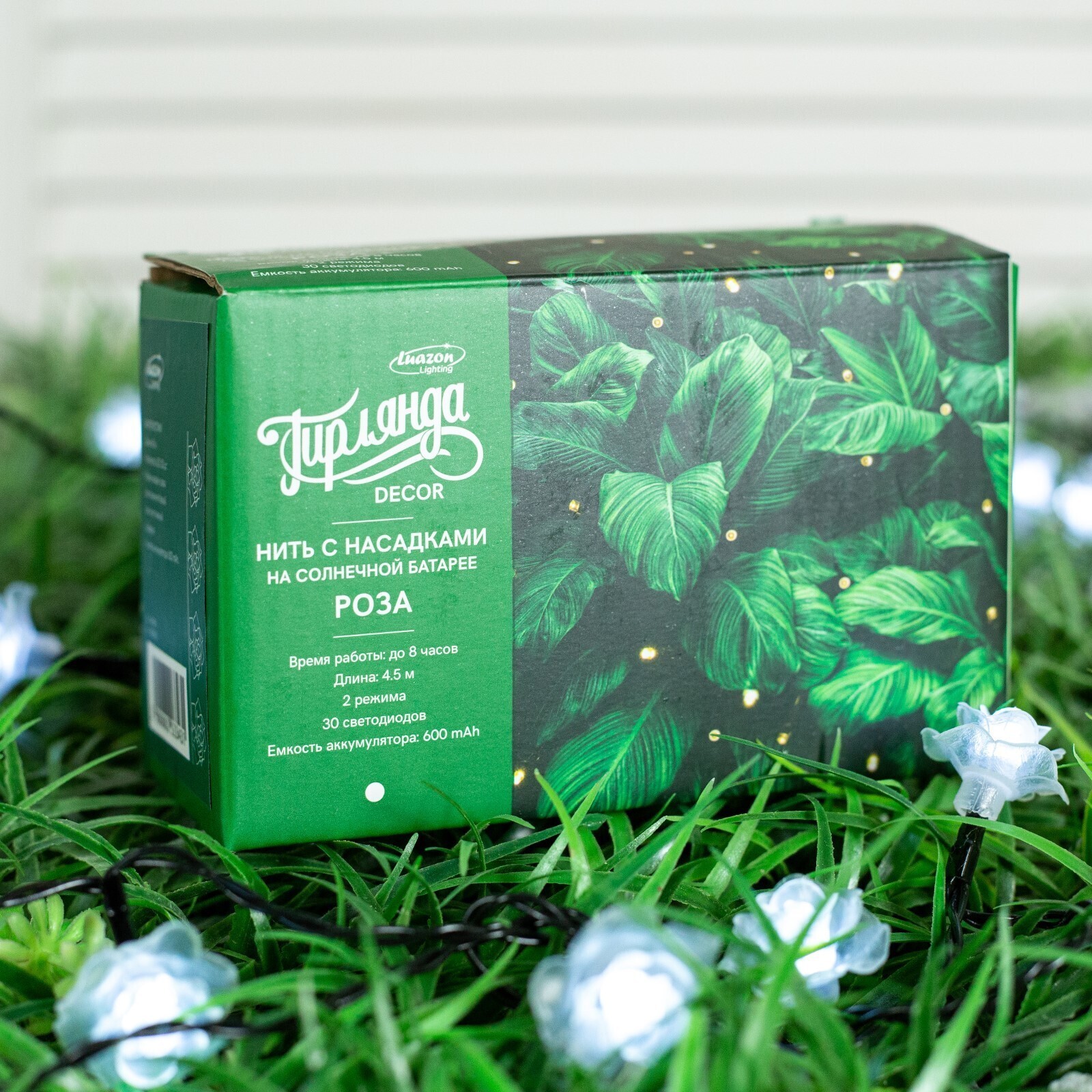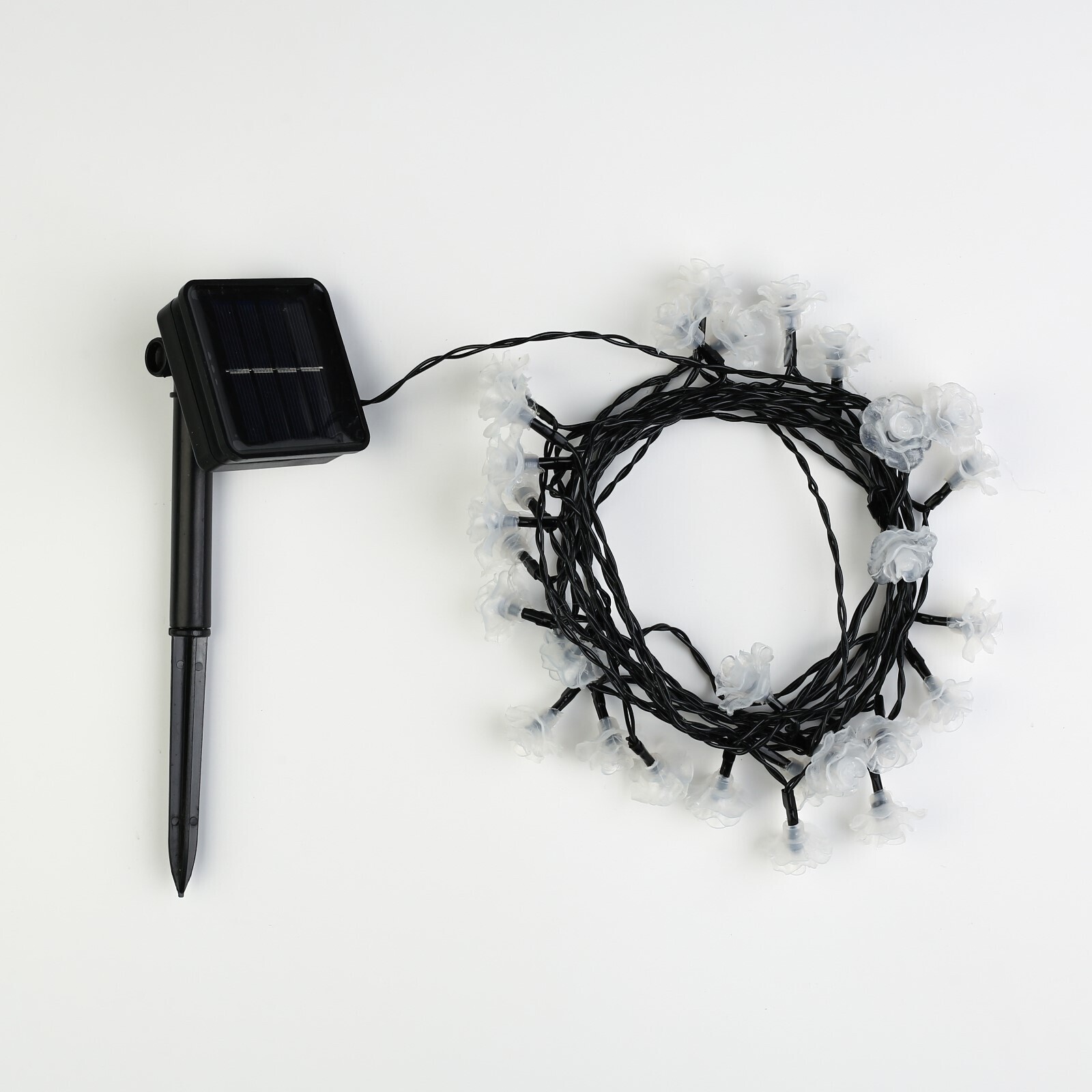 Гирлянда «Нить» 4.5 м с насадками «Розы», IP44, тёмная нить, 30 LED, свечение белое, 2 режима, солнечная батарея