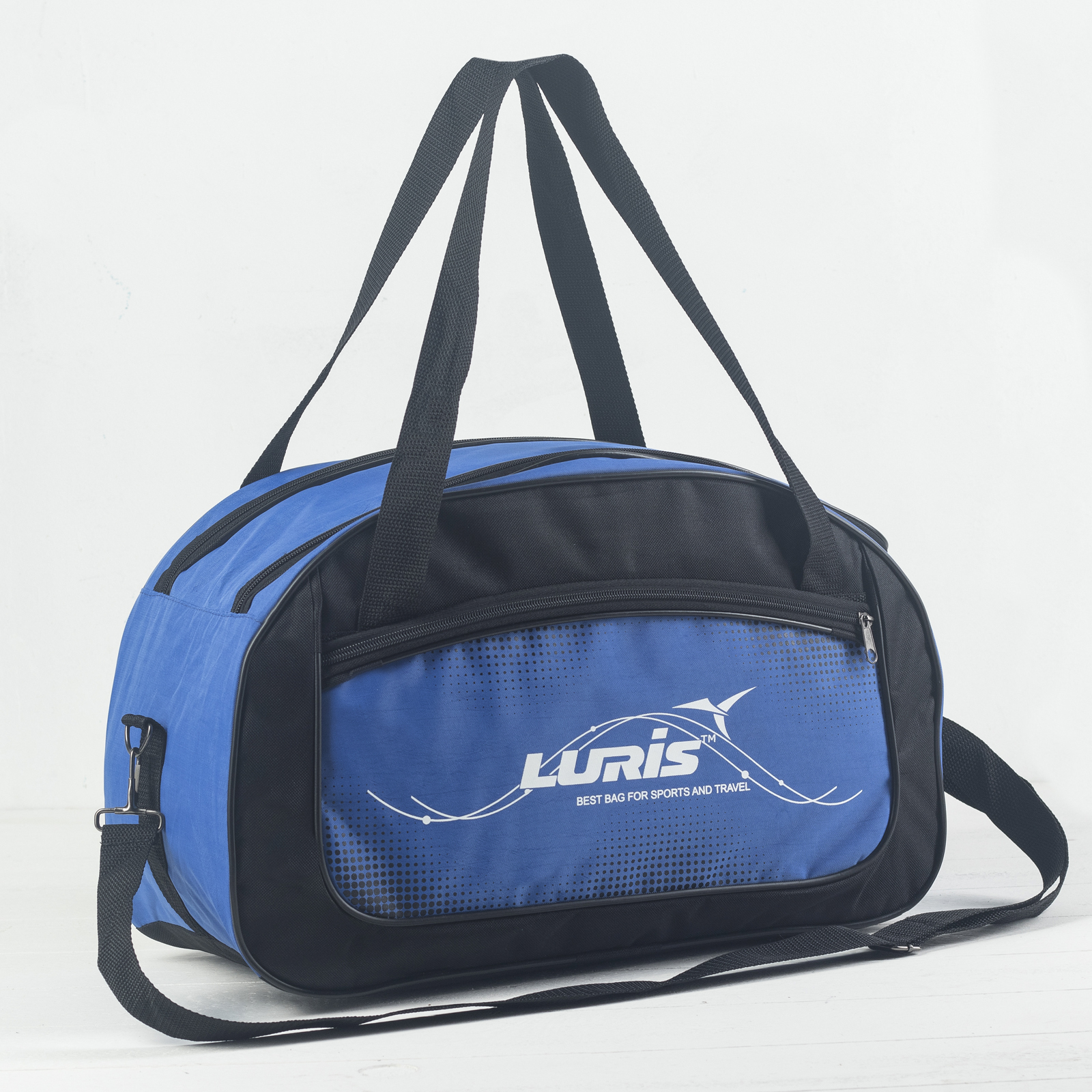Сумка спортивная на молнии, наружный карман, цвет чёрный/голубой