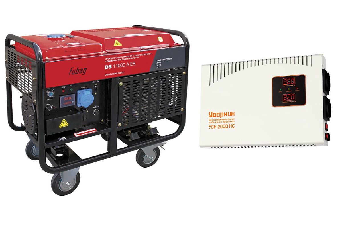 Набор: Дизельный генератор FUBAG DS 11000A ES+Стабилизатор напряжения УДАРНИК УСН 2000 НС