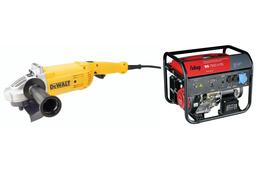 В состав набора входят: Бензиновый генератор FUBAG BS 7500 A ES элекростартер коннектор авт. 7.3кВА 29.5А 220В 420м3 25л, Угловая шлифмашина DEWALT DWE496-KS 230мм 2600Вт 6600об./мин. 5.2 кг