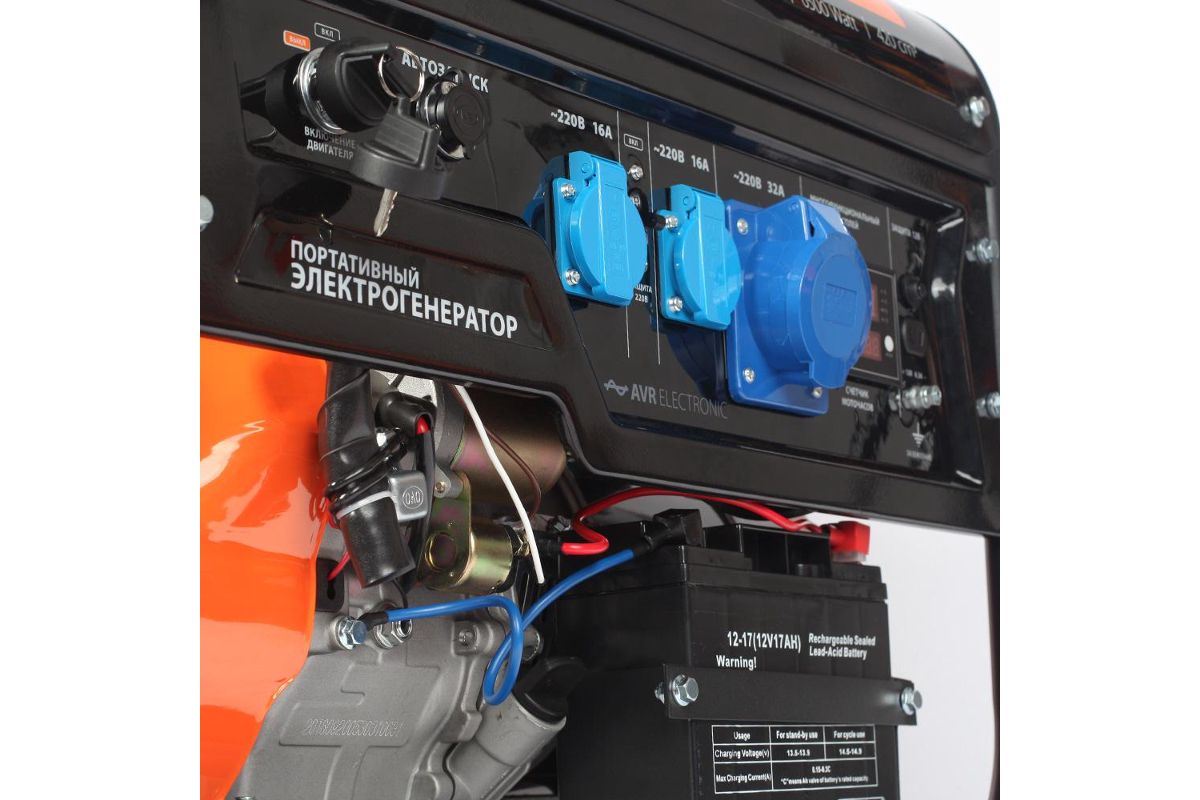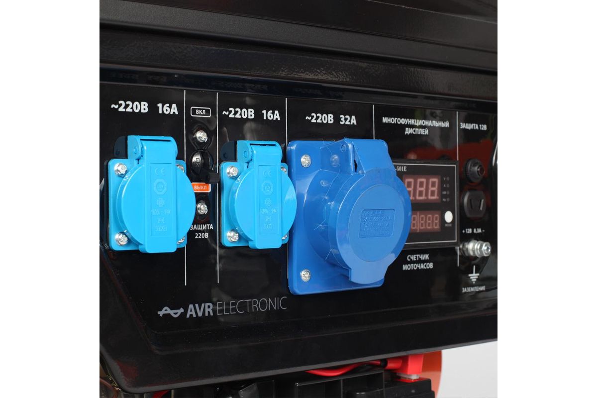 - Силовая розетка 32А для снятия всей мощности генератора. (силовая вилка 32А в комплекте);
