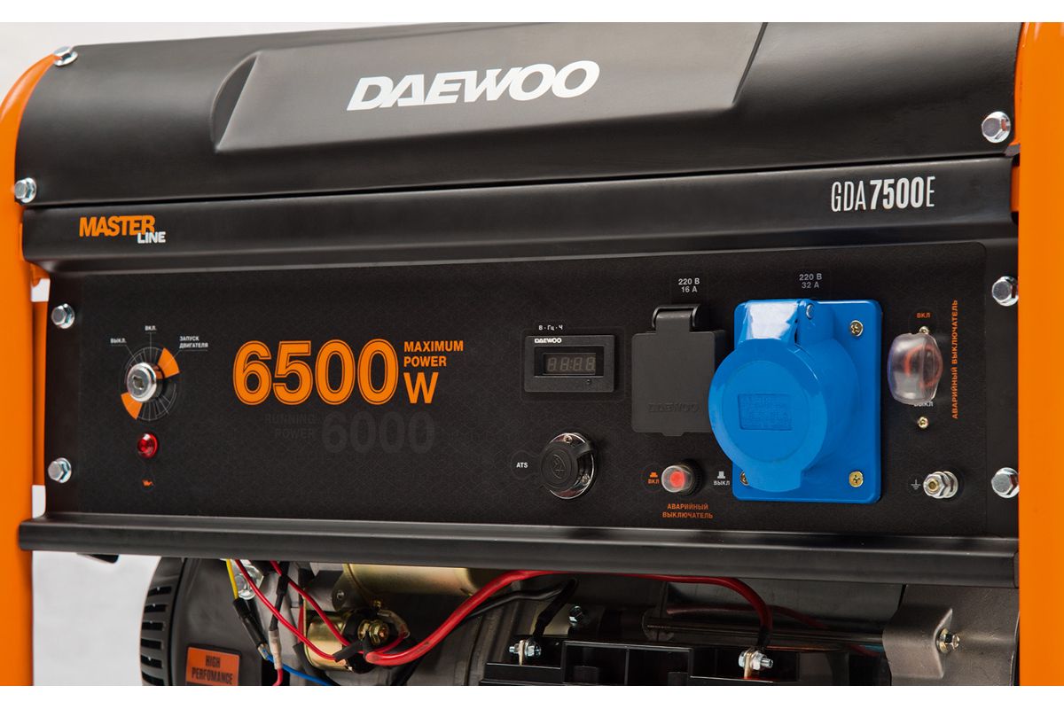 Генератор DAEWOO GDA 7500E 6.0/6.5кВт 230В 425см3 15.0лс 25л 2х230В 79кг
