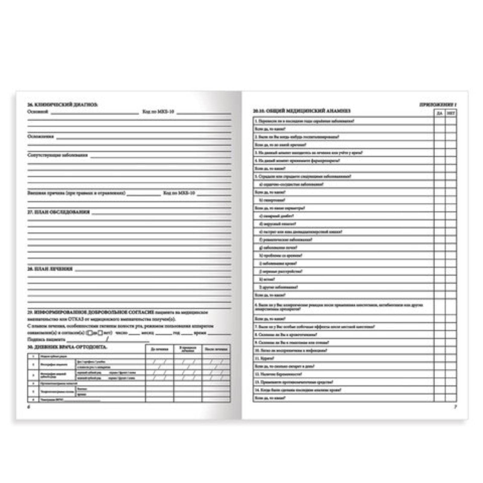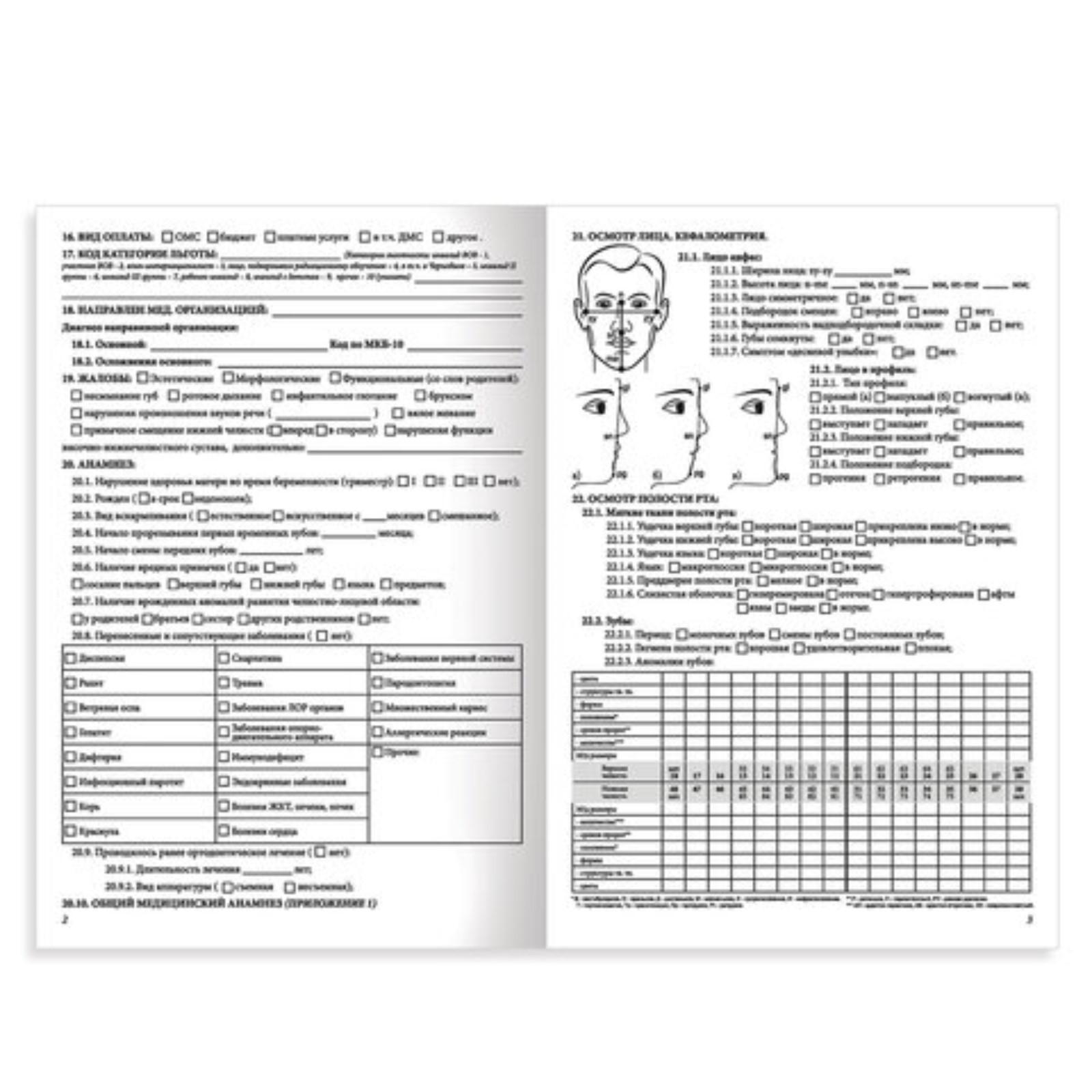 Медицинская карта ортодонтич пациента (Форма № 043-1/у), 12 листов, А4 198 x 278 мм, STAFF