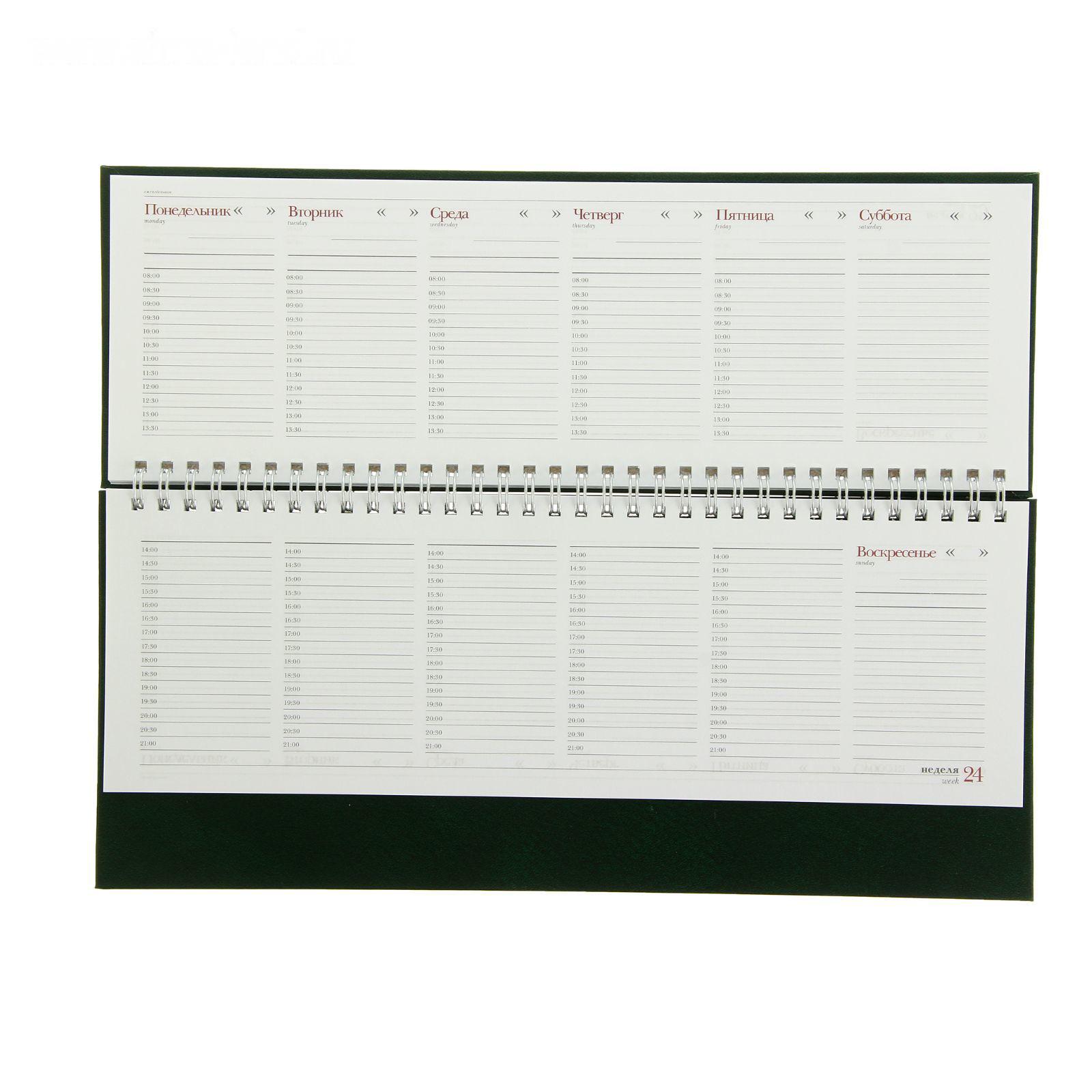 Планинг недатированный 64 листа на гребне, твёрдая обложка бумвинил, блок 70 г/м2, зелёный