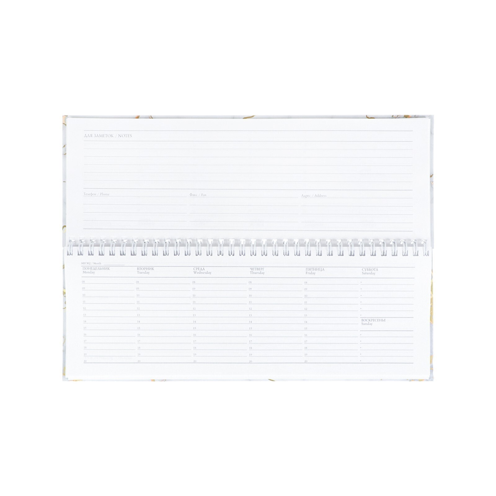 Планинг недатированный 105 х 290 мм 64 листа на гребне "Узоры мрамор", твёрдая обложка
