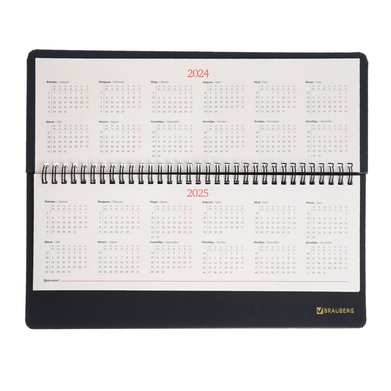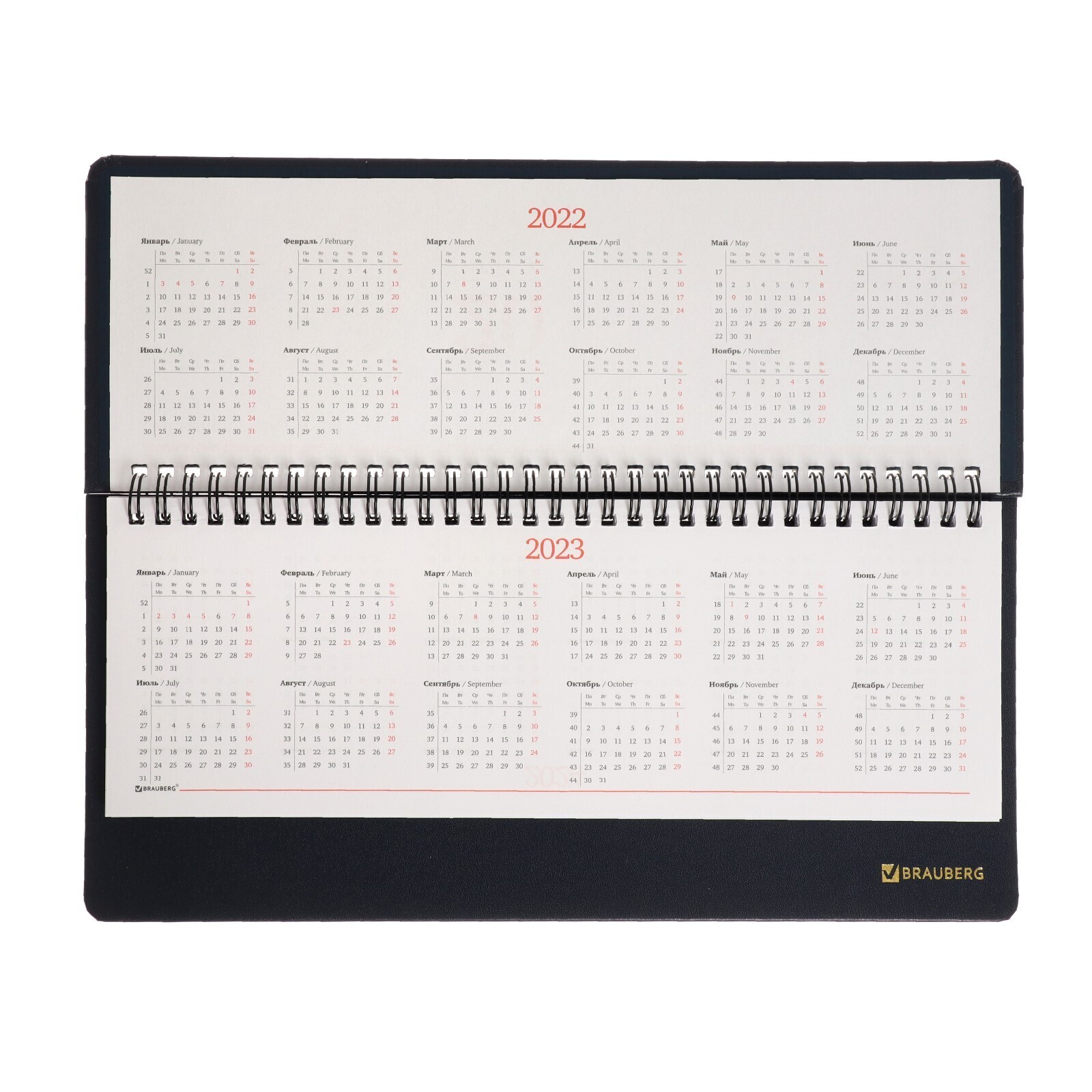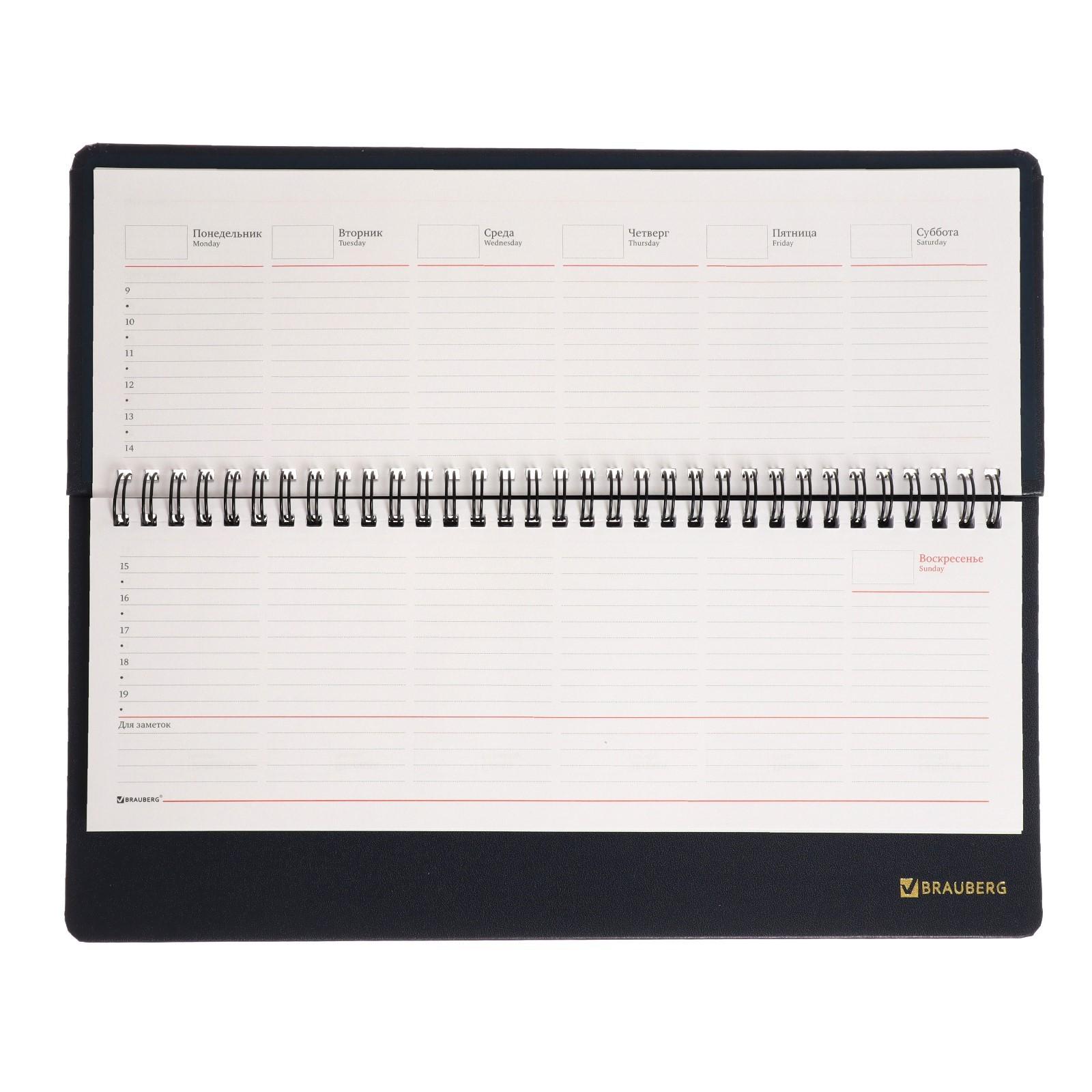 Планинг недатированный 80 листов, на гребне, BRAUBERG Select, под зернистую кожу, тёмно-синий