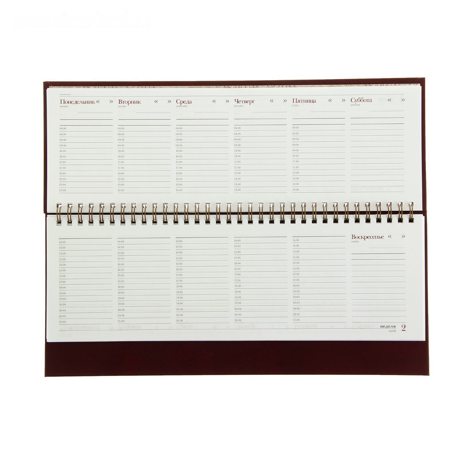 Планинг недатированный, 64 листа на гребне, обложка бумвинил, бордовый