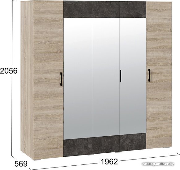 Нео 5-ти дверный с зеркалом (дуб сонома светлый/дуб сонома светлый/ателье темный/дуб сонома светлый)