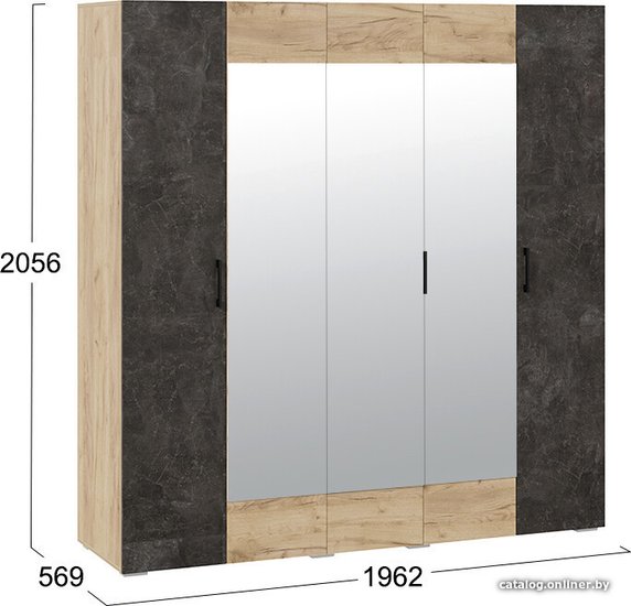 Нео 5-ти дверный с зеркалом (дуб крафт золотой/ателье темный/дуб крафт золотой/ателье темный)