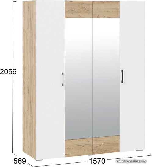 Нео 4-х дверный с зеркалом (дуб крафт золотой/белый/дуб крафт золотой/белый)