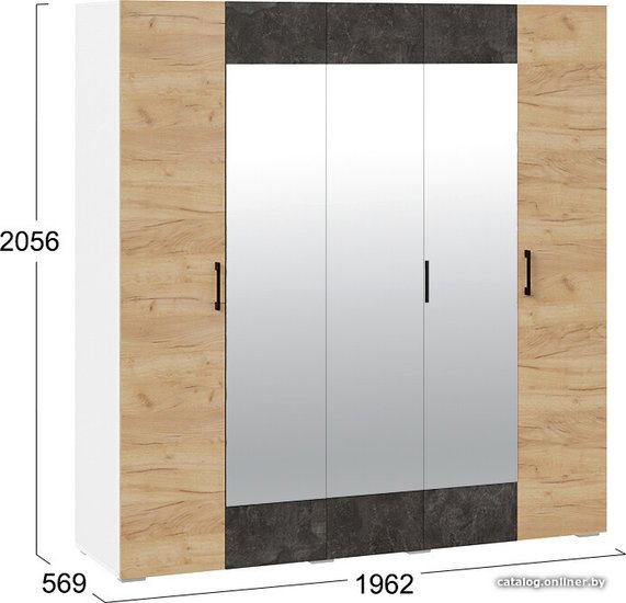 Нео 5-ти дверный с зеркалом (белый/дуб крафт золотой/ателье темный/дуб крафт золотой)