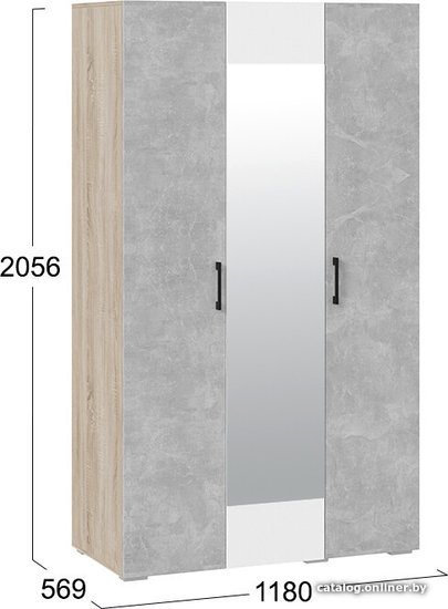 Нео 3-х дверный с зеркалом (дуб сонома светлый/ателье светлый/белый/ателье светлый)