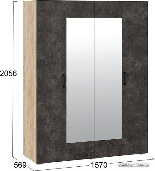 Нео 4-х дверный с зеркалом (дуб крафт золотой/ателье темный/ателье темный/ателье темный)