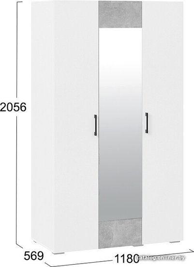 Нео 3-х дверный с зеркалом (белый/белый/ателье светлый/белый)