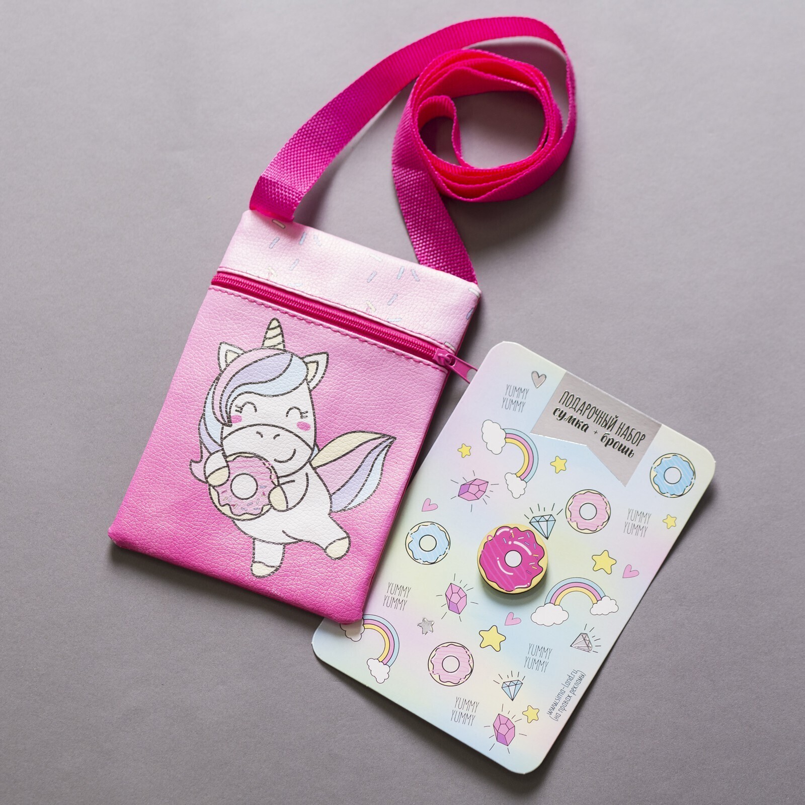 Детский подарочный набор Единорожка: сумка + брошь, цвет розовый