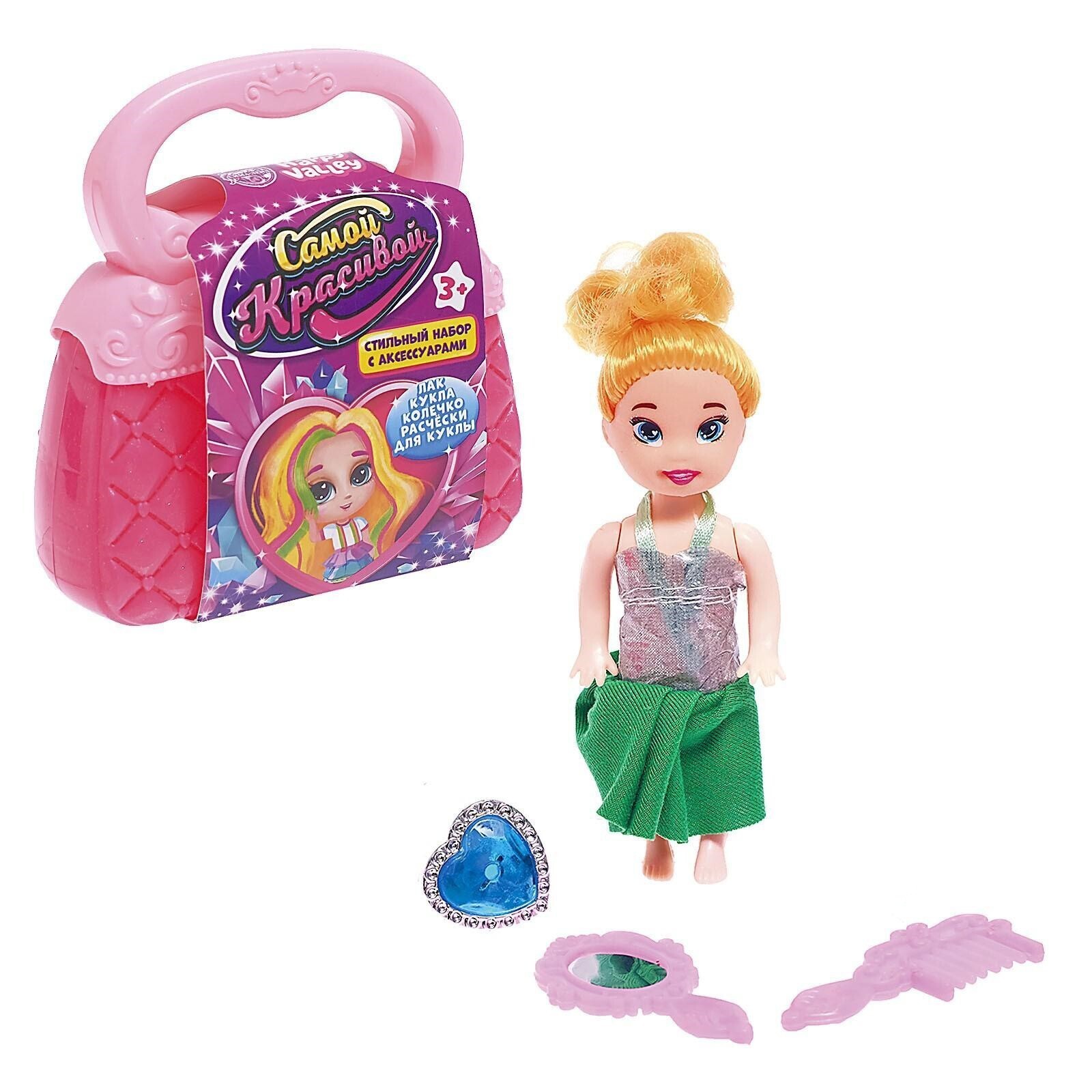 Ваша принцесса мечтает стать визажистом и совершает набеги на мамину косметичку? В таком случае набор «Самой красивой» придётся ей по душе. Подарите модную сумочку малышке. В комплект входит симпатичная куколка, детская декоративная косметика, расчёска, зеркальце и колечко.