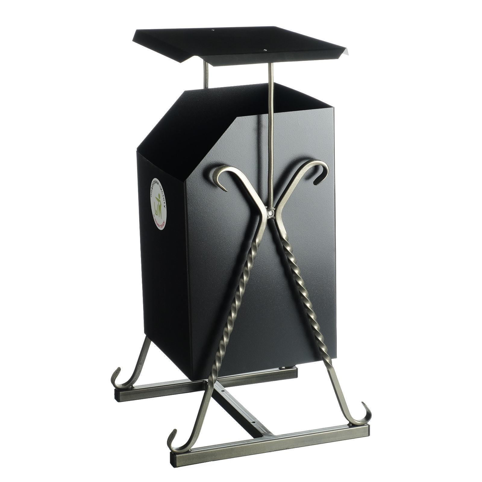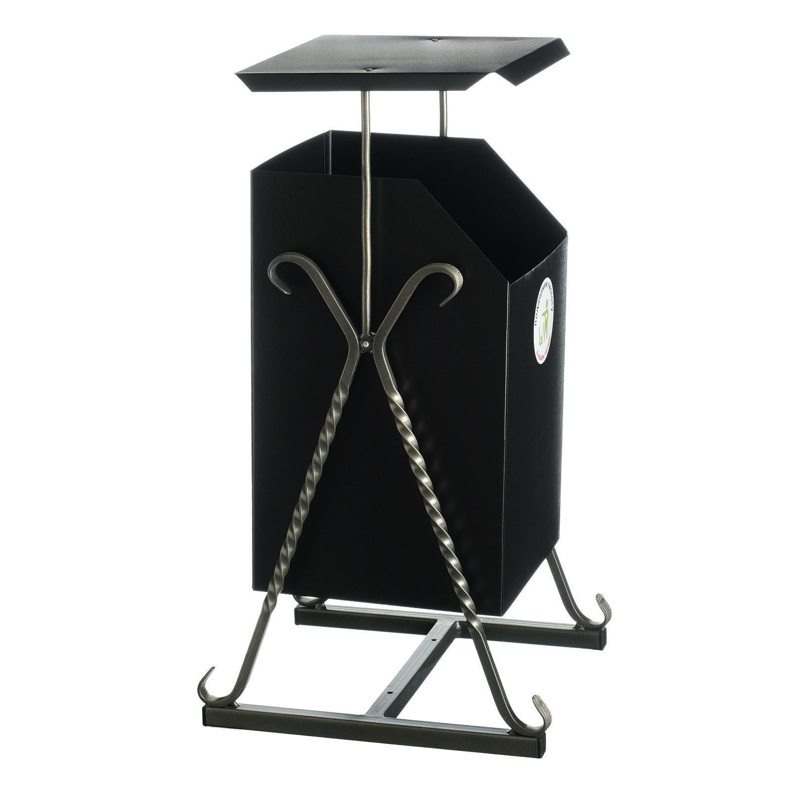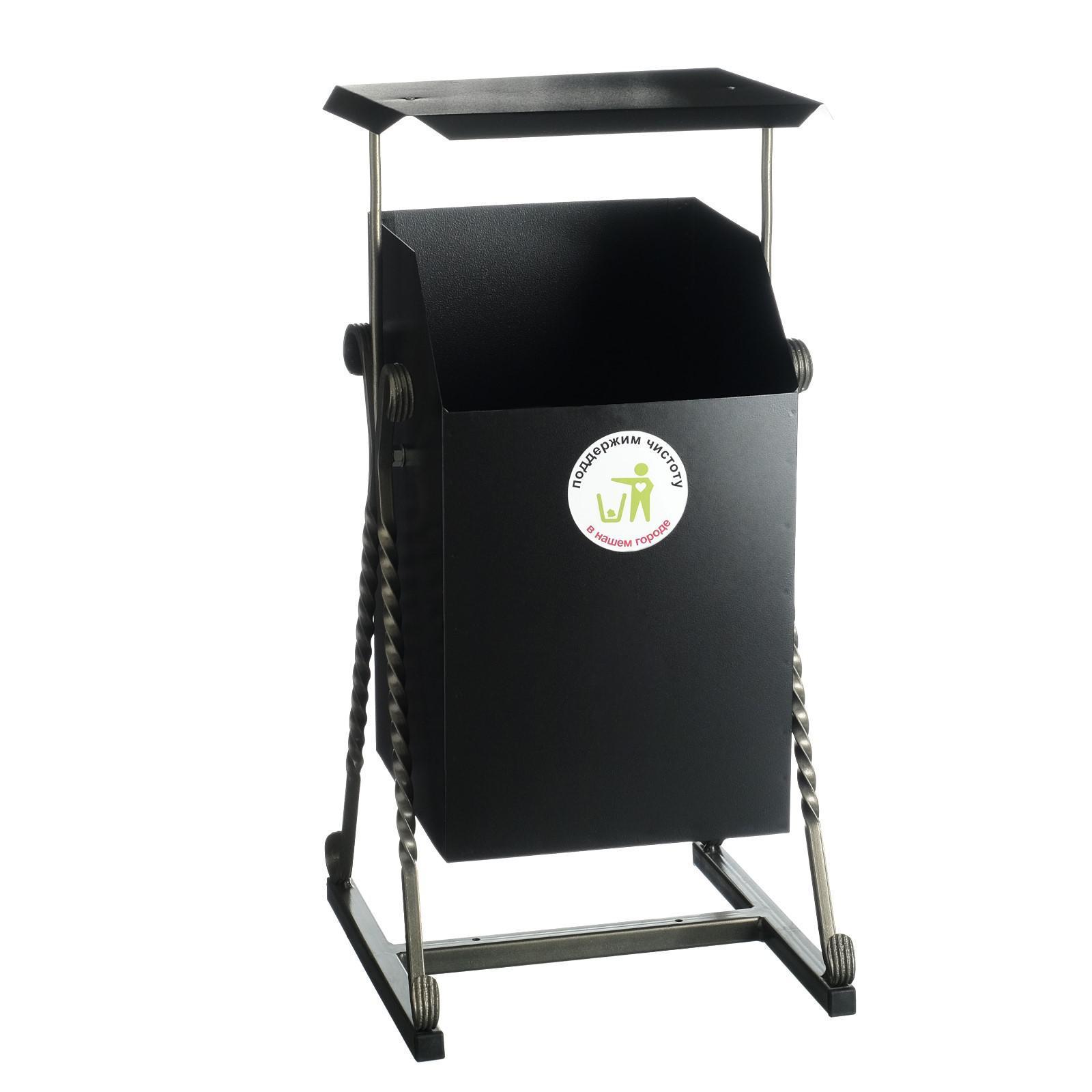 Урна квадратная на гнутых ножках с крышей, 22 л Черная, художественная ковка 2691160