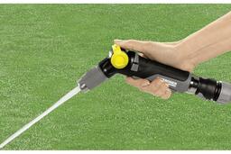 Самые высокие требования полива требуют высококачественного материала. Металлический пистолет Premium не только удобно держать в руке, но и также он и чрезвычайно прочный благодаря металлическому наконечнику. Вращающаяся ручка - с помощью замка курок можно зафиксировать спереди или сзади ручки, что позволяет использовать распылитель с индивидуальными комфортными настройками. Повышенные эргономичность и защищенность благодаря элементам из мягкого полимера. Плавная регулировка формы струи (от точечной до конической). Удобная регулировка расхода воды одной рукой (мин. – макс.). Простая фиксация рычага для непрерывного полива. Легко поливать клумбы, грядки, кустарники или можно очищать садовую мебель и инструмент от грязи. Все распылители Karcher совместимы с распространенными на рынке системами стыкового соединения и легко подключаются к садовому шлангу с помощью коннектора.