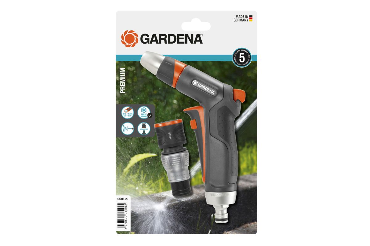 Комплект GARDENA Premium 18306-20.000.00 пистолет-наконечник для полива + коннектор с автостопом