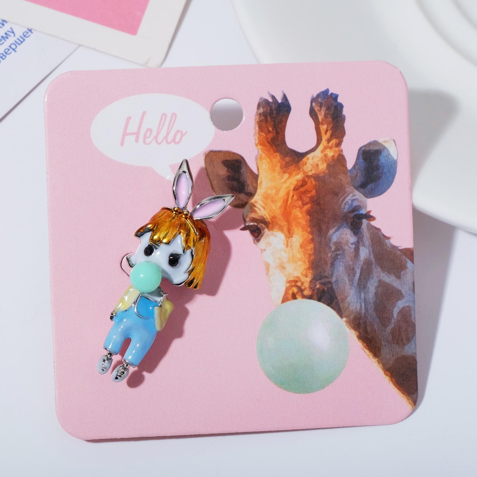 Брошь "Девочка" бабл-гам, цветная в серебре