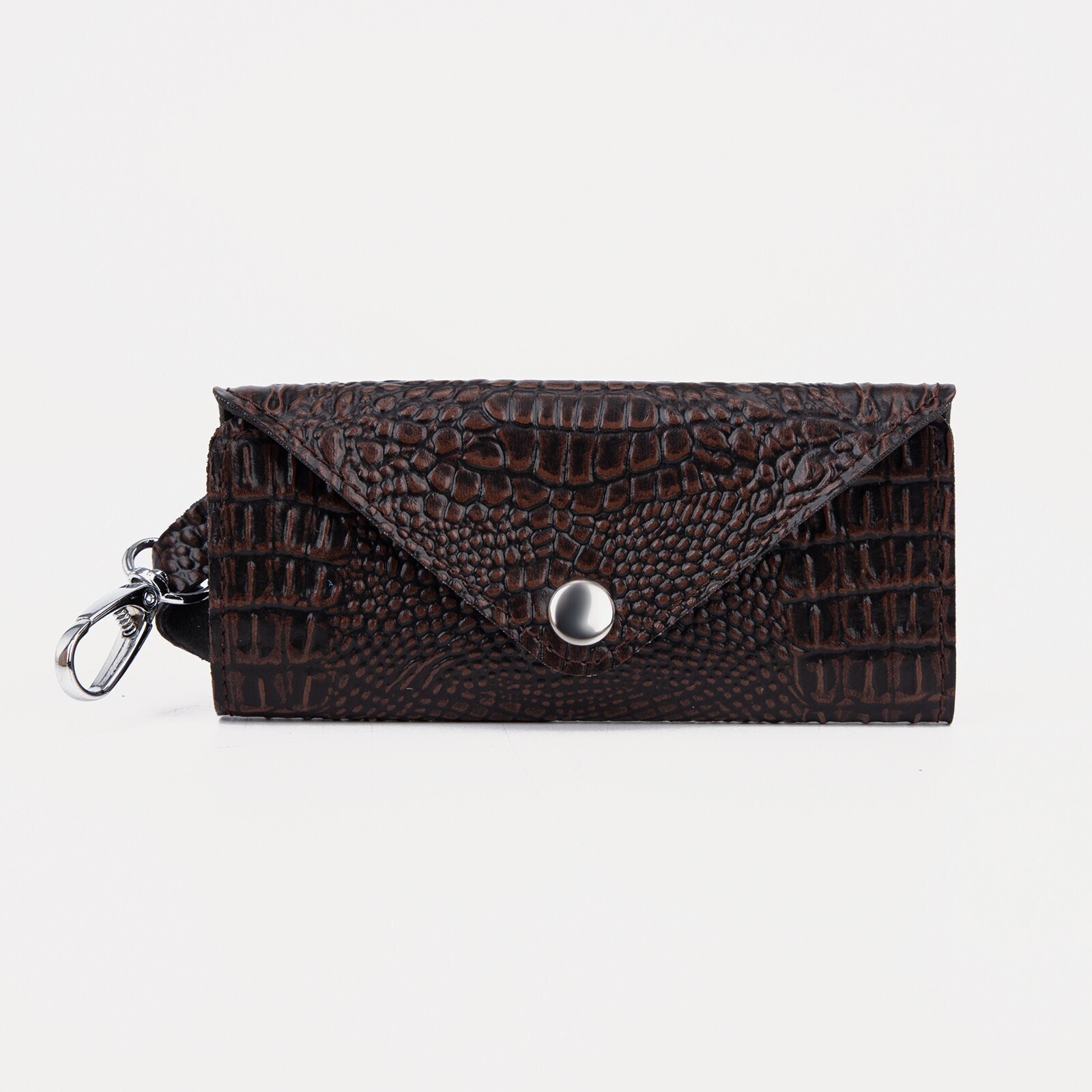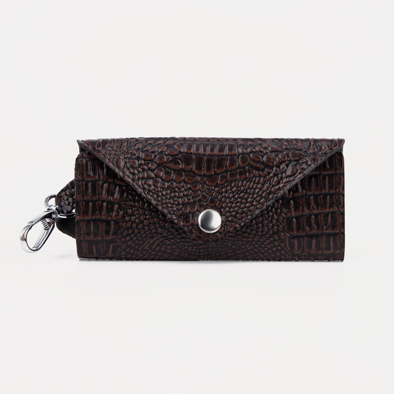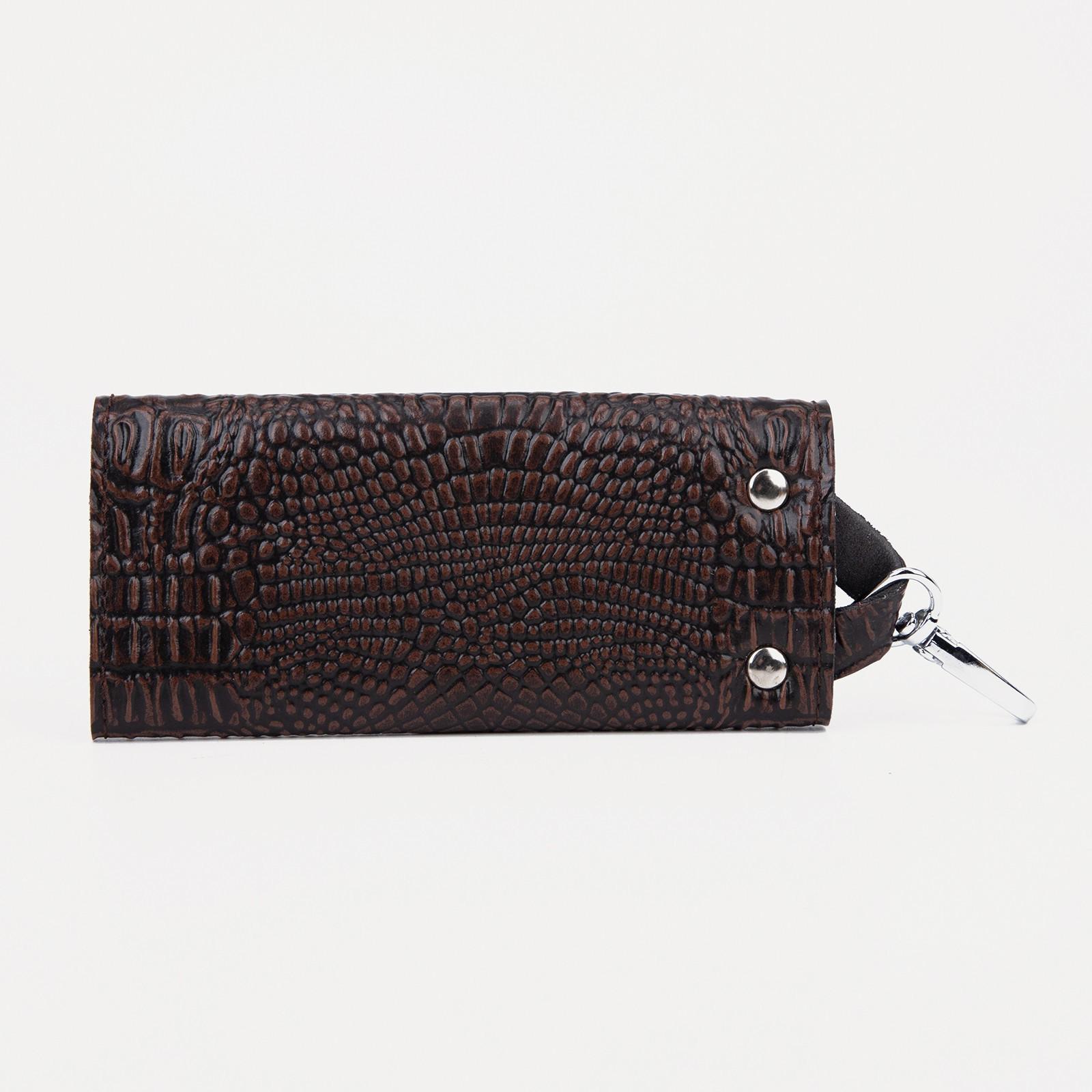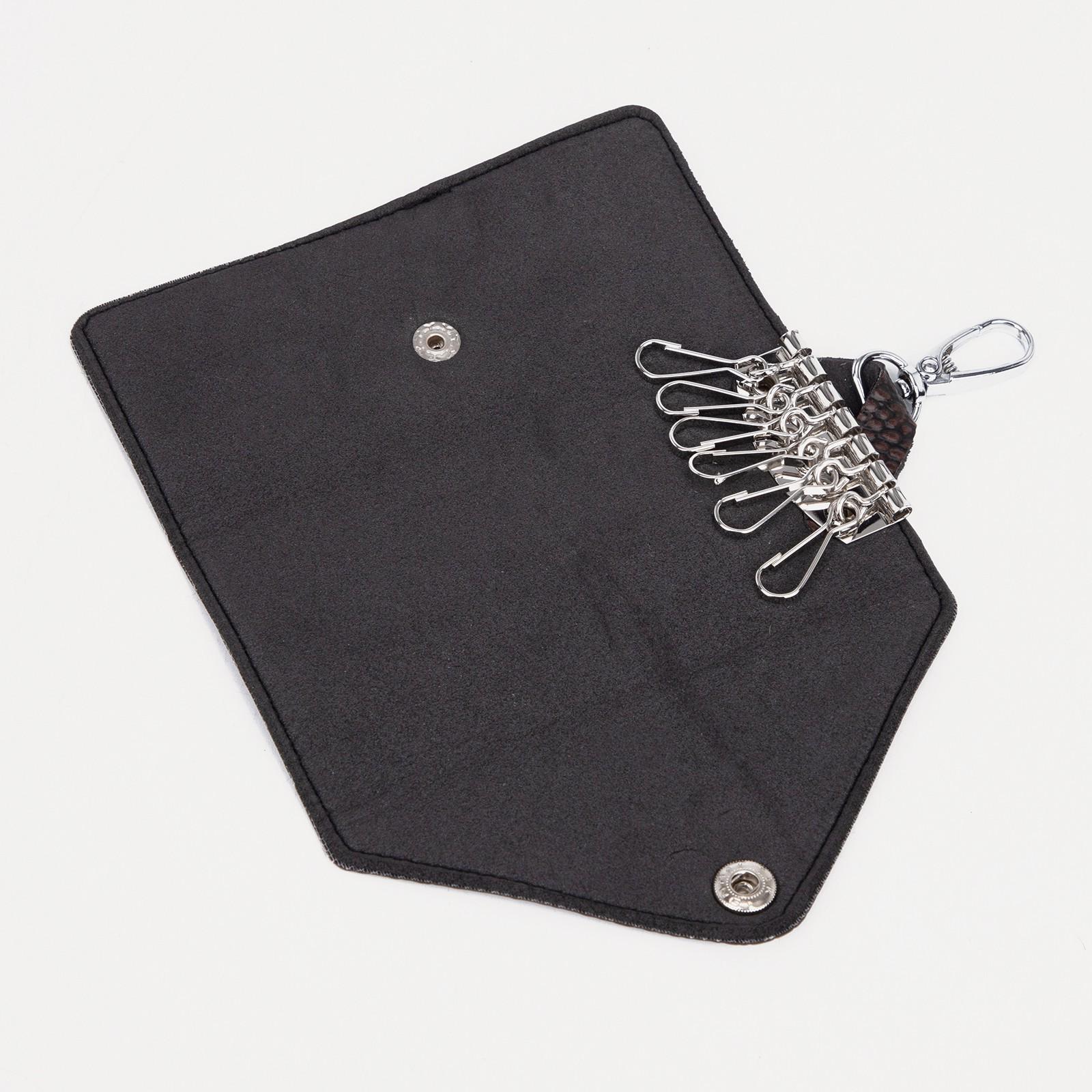 Ключница на кнопке, длина 11 см, 7 карабинов, цвет коричневый