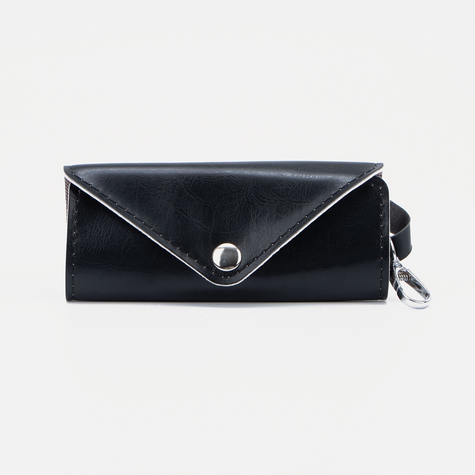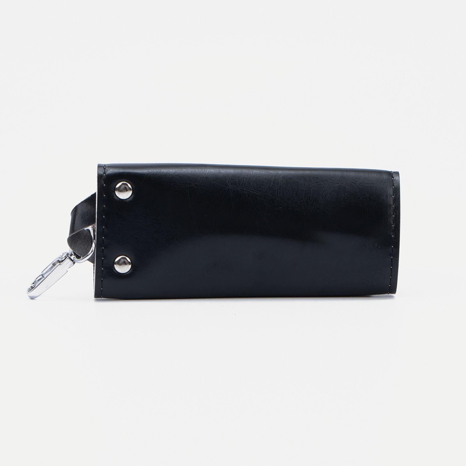 Ключница на кнопке, длина 13,5 см,7 карабинов, цвет чёрный