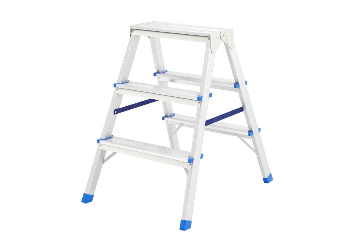 Алюминиевая двусторонняя стремянка широко используется в частных домах и квартирах.