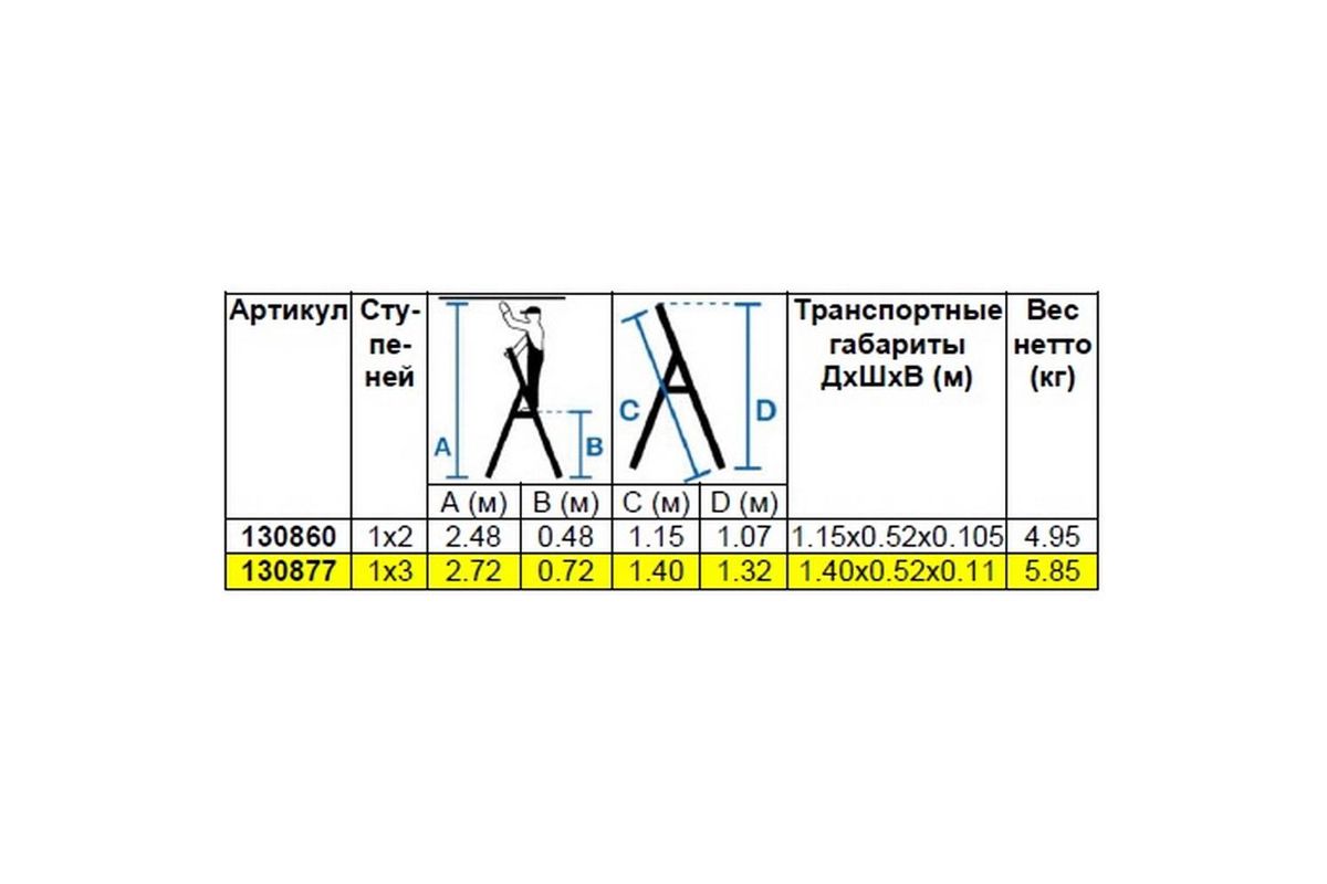 - Стремянка оборудована обрезиненными ступенями размером 375х250 мм, служащими для безопасного подъема и более удобного расположения при работе;
