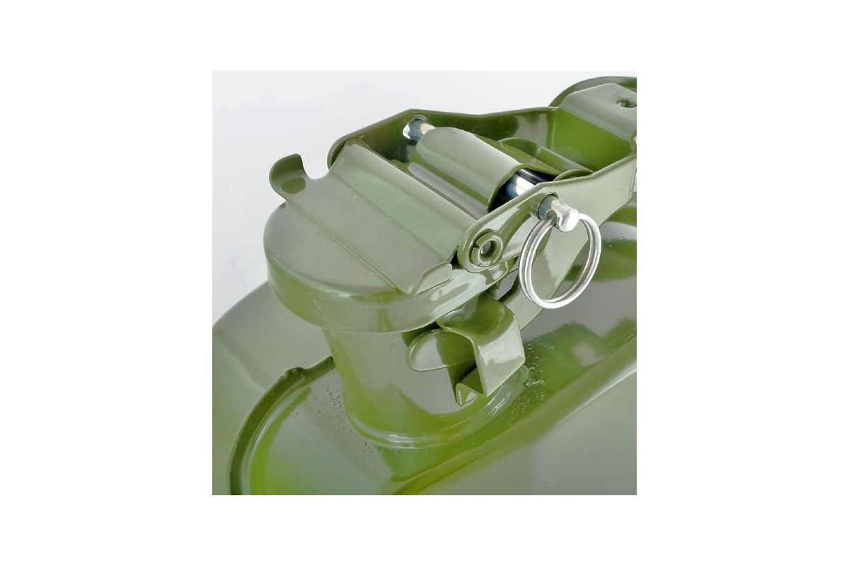 Устойчивая конструкция канистры предотвращает ее перемещение в багажнике при интенсивном движении, снижая уровень нежелательного шума. Механический механизм горловины предохраняет содержимое от протекания, а особые материалы резиновой прокладки придают ей высокую долговечность и устойчивость к механическим повреждениям в процессе эксплуатации. Конструкция рычажного механизма крышки предоствращает появления люфта при активной эксплуатации. Специализированная форма носика исключает проливание жидкости.