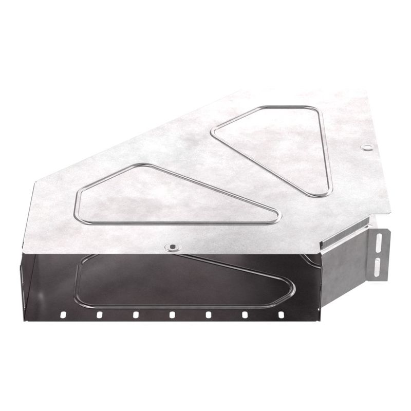 Угол горизонтальный 90 градусов предназначен для поворота кабельных трасс в горизонтальном направлении на 90 градусов, для перфорированных и глухих лотков. В комплект входит крышка.