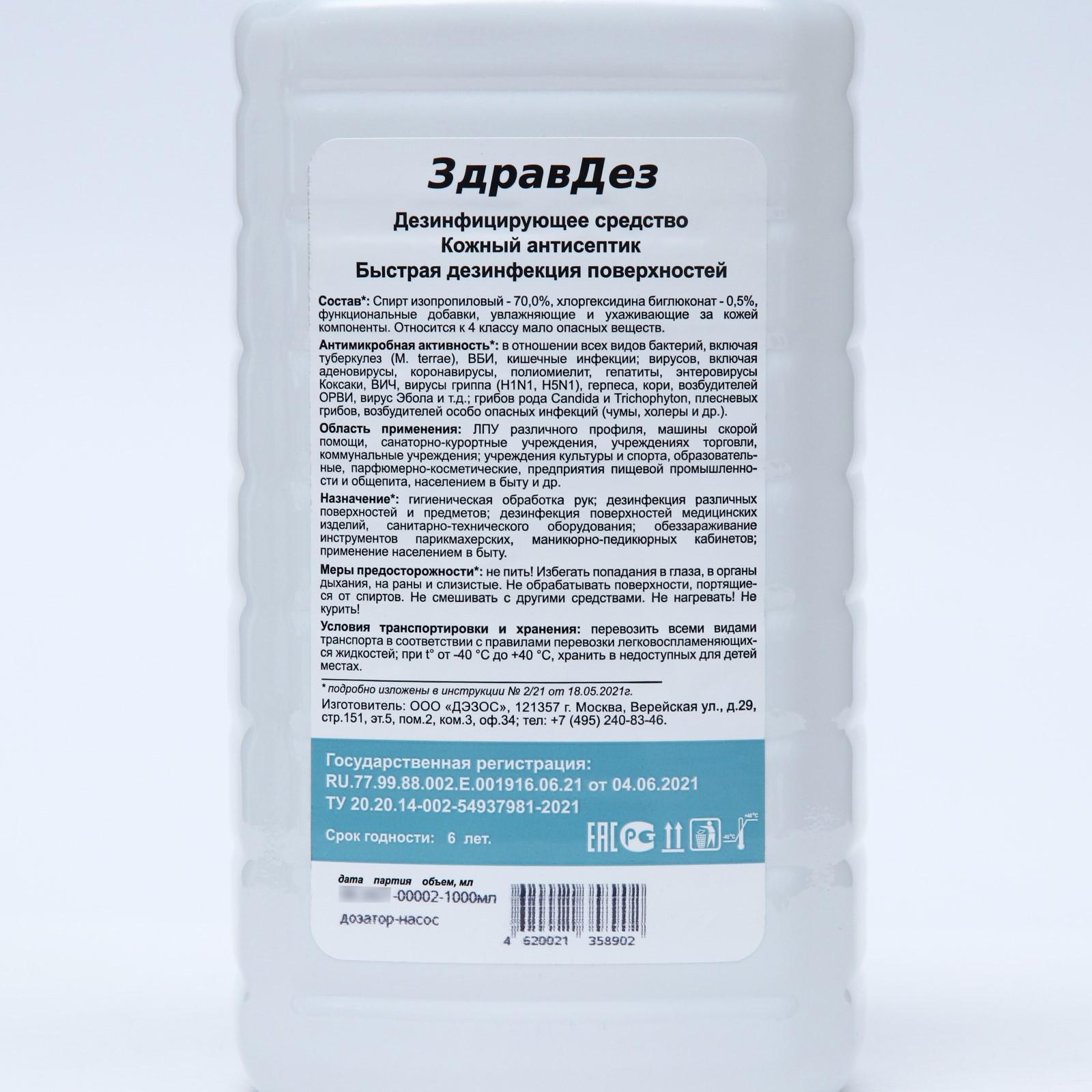 Антисептик "ЗдравДез", насос-дозатор, 1 л
